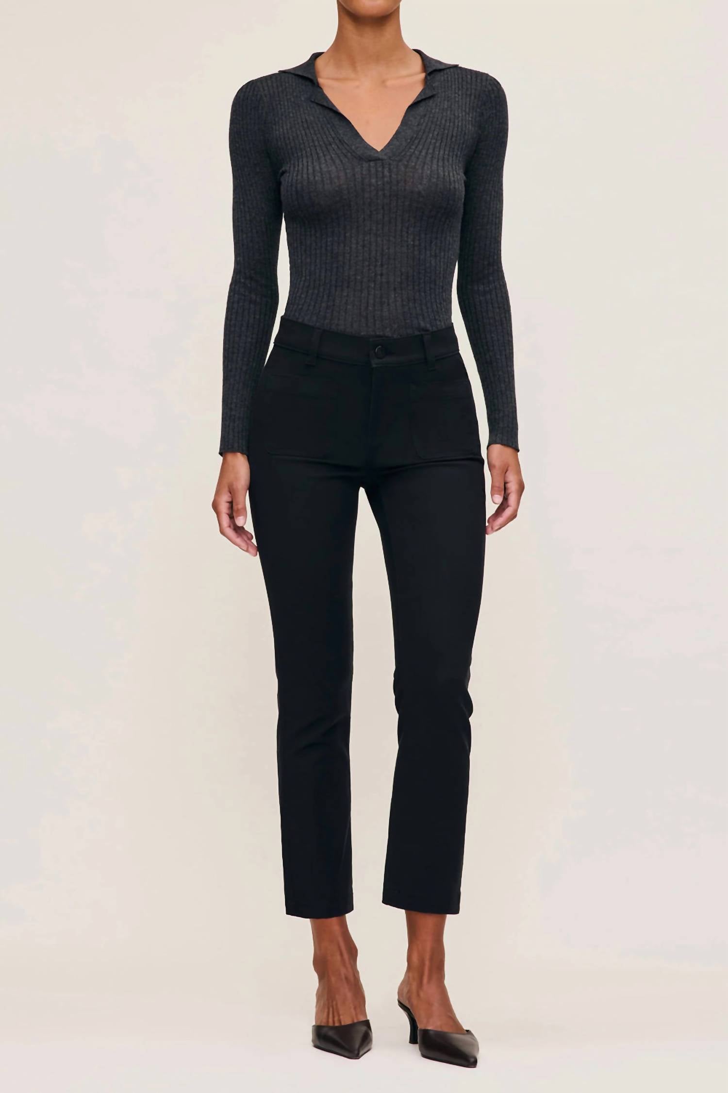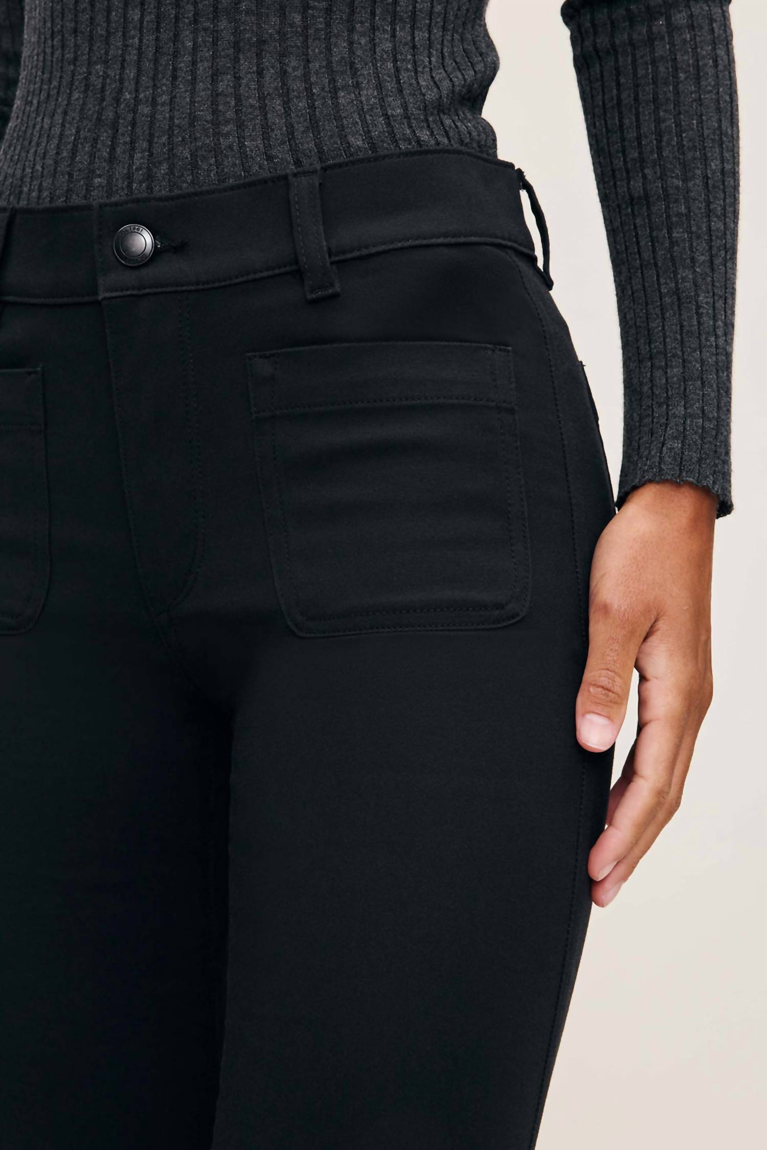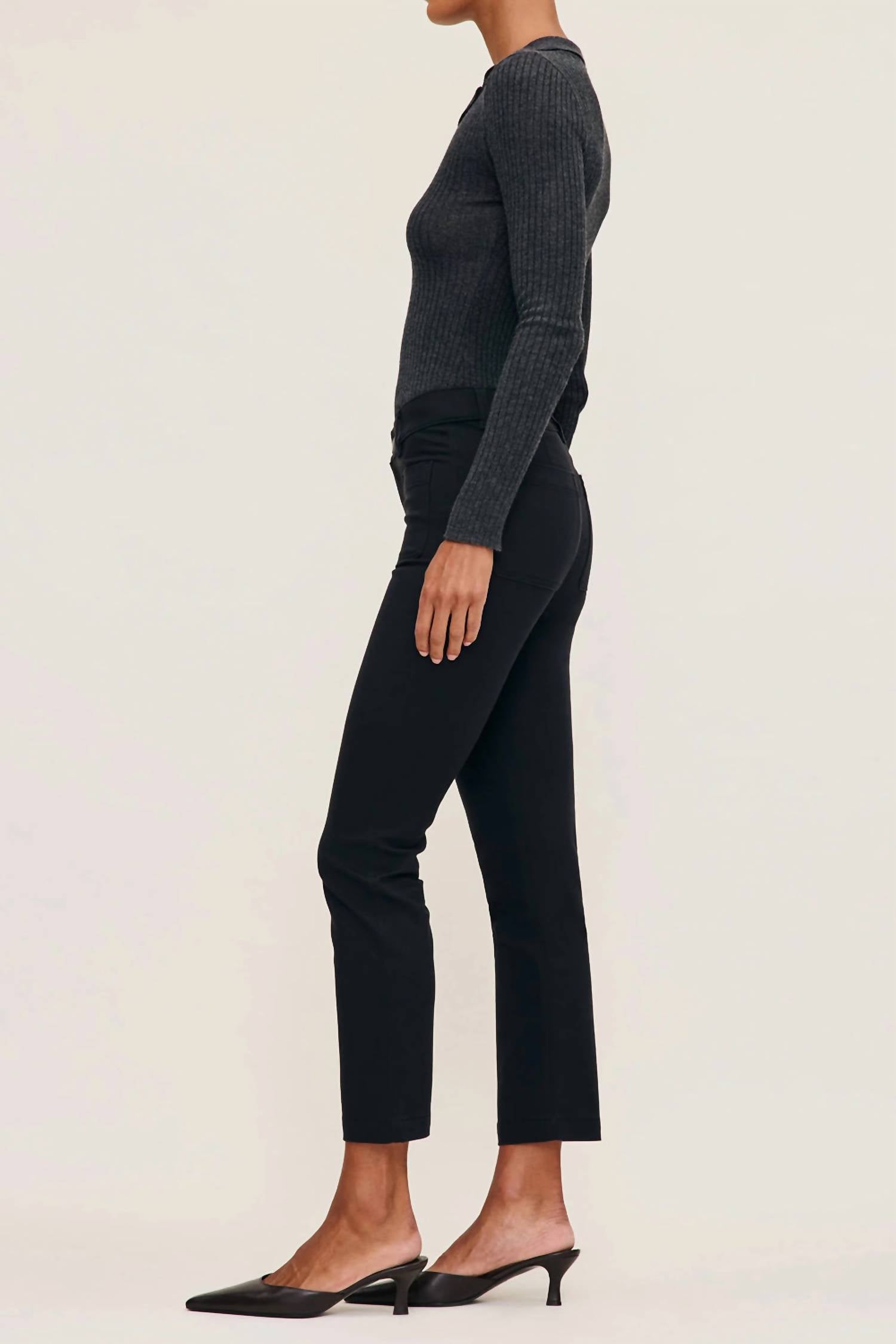 Upgrade your wardrobe with these cropped pants, designed to merge sophistication and wearability. The tailored fit ensures ultimate comfort during long days or nights out. Elevate your wardrobe with the Mara Straight Ankle jeans by DL1961 - Women's, crafted in a soft, breathable cotton blend with high stretch. These jet black jeans feature a mid-rise waist and ankle length cut, highlighted by a 9" rise, 27" inseam, and a 13.5" leg opening for a sleek silhouette. The straight leg design with black oxide hardware and tonal stitching ensures a polished finish. Enjoy the perfect fit with Instasculpt technology, contouring and smoothing without losing shape, and convenience with a button closure. Care for them easily with machine wash.