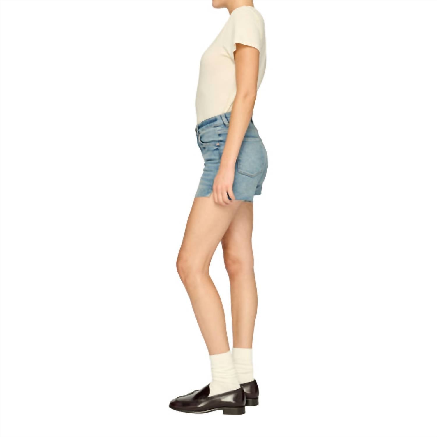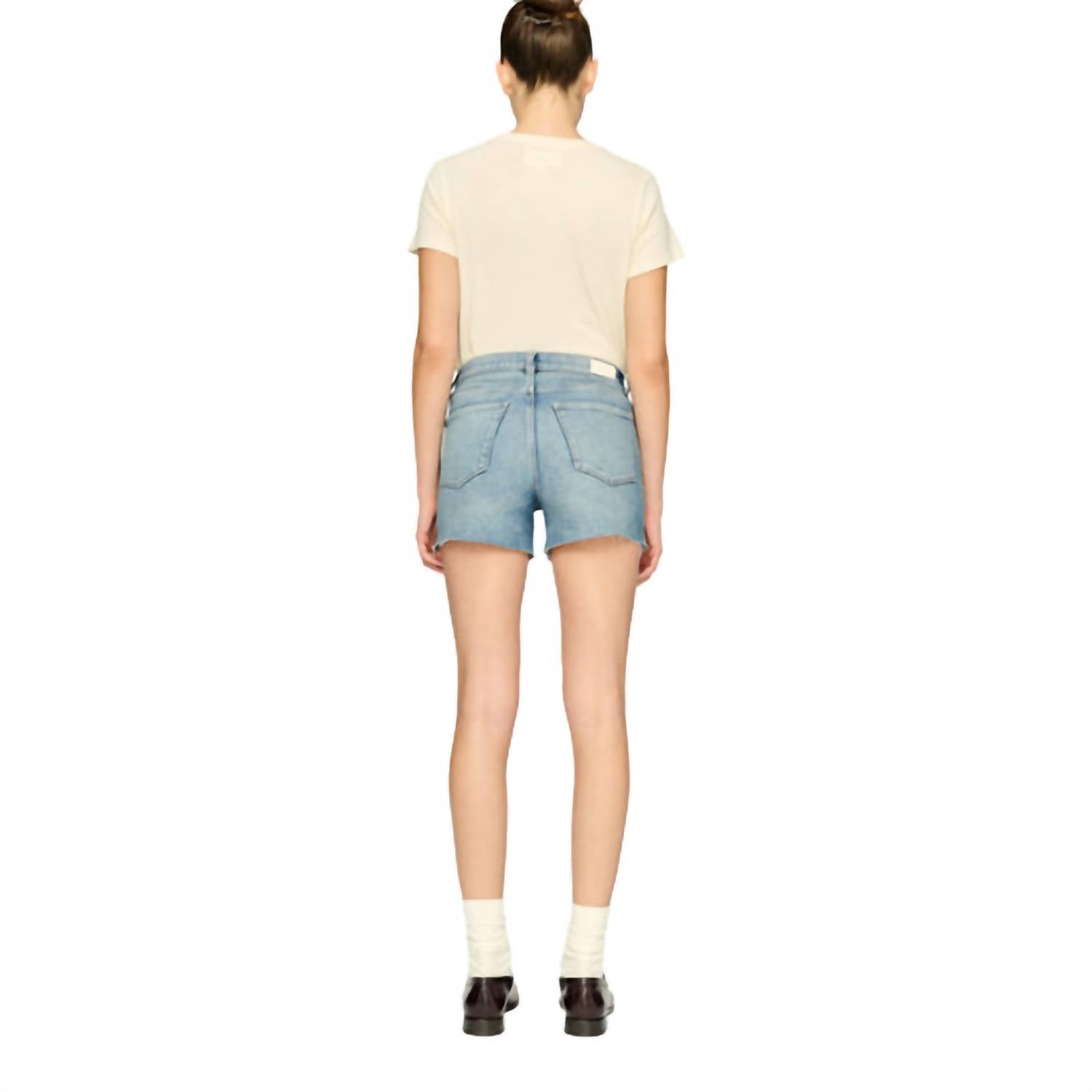 High-waist is here to stay and we especially love this style short. Experience the perfect blend of style and comfort with the DL1961 Women's Marion Short in the eye-catching Springdale color. These high-rise, fitted shorts feature a 3.5-inch inseam, offering a classic, tailored look complete with a button closure for ease. Crafted for summer streetwear and ideal for vacation occasions, the Marion Short boasts details like a raw hem, multi-colored stitching, brushed silver shank, and matte copper rivets. Complete with pockets for practicality, these shorts highlight a solid pattern, capturing an authentic worn-in look.