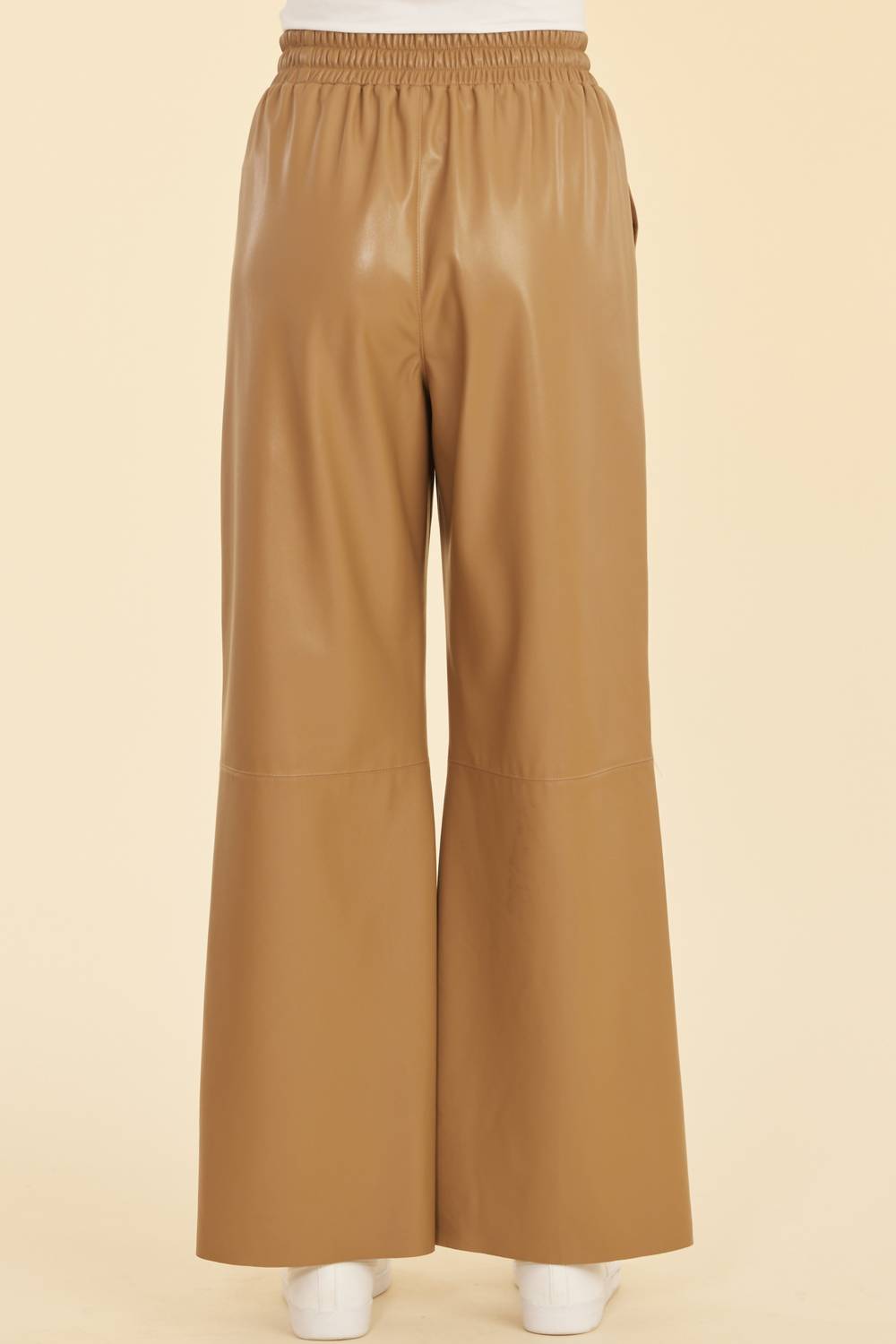 Wide-leg look in a rich camel hue. Crafted from 100% Polyurethane, these pants boast a comfortable fit with a practical tie closure and are made in China. Designed with a thick drawstring waistband. Care is simple with a spot or wipe clean instruction.