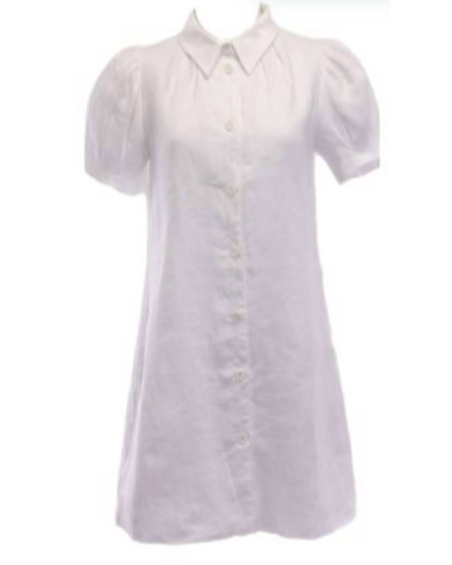 A short and breezy dress for those warmer days. Introducing the Linen Button Down Mini Dress by Dolce Cabo, a blend of style and comfort for your summer wardrobe. This solid white dress features short puff sleeves and a classic shirt collar, making it ideal for vacation wear. Crafted from breathable linen, its A-line silhouette ensures a relaxed fit. Closure: Button closure. Care instructions: Dry clean only. Perfect for a minimalist look whether you're dressing up for Valentine's Day or enjoying a casual stroll.