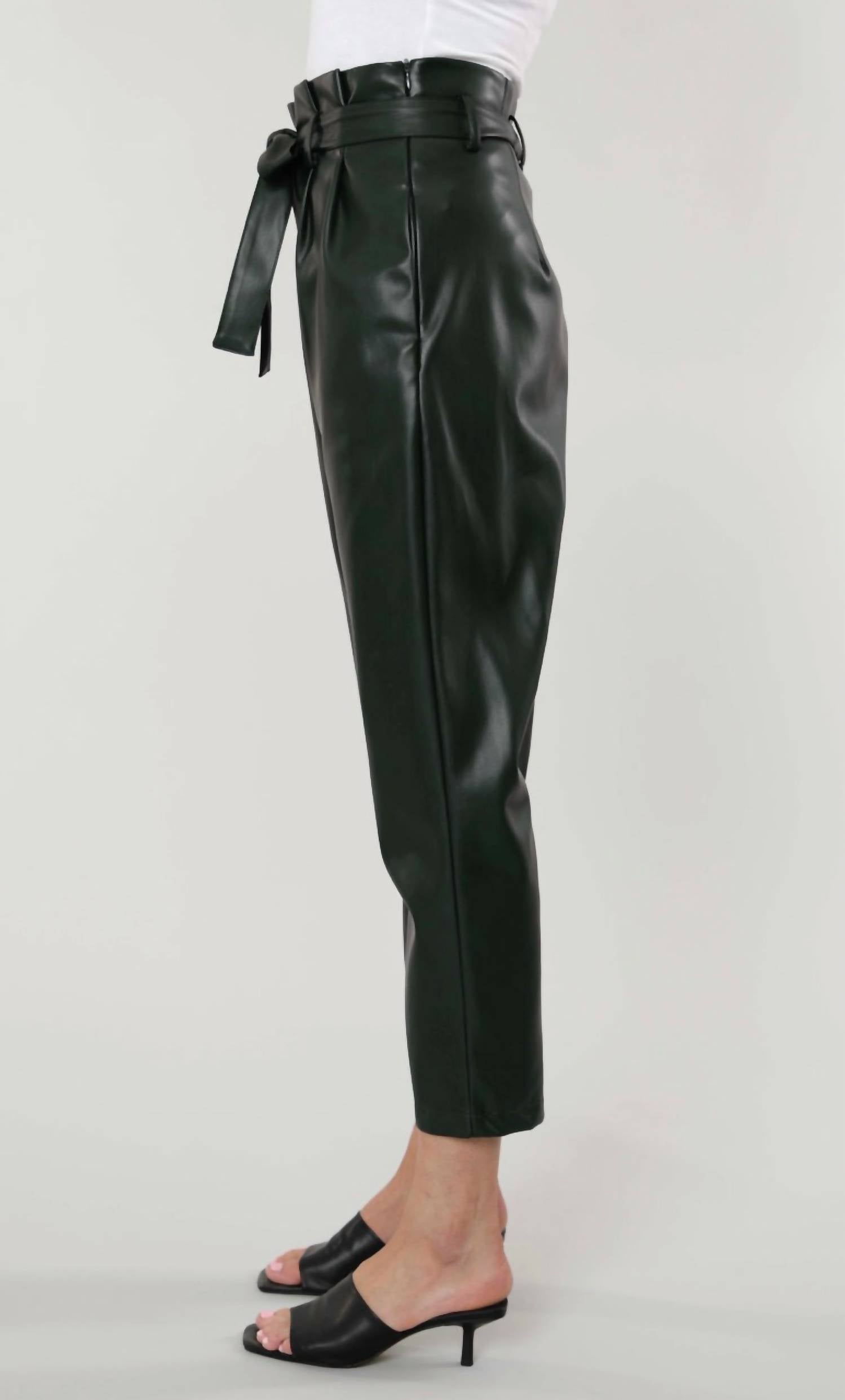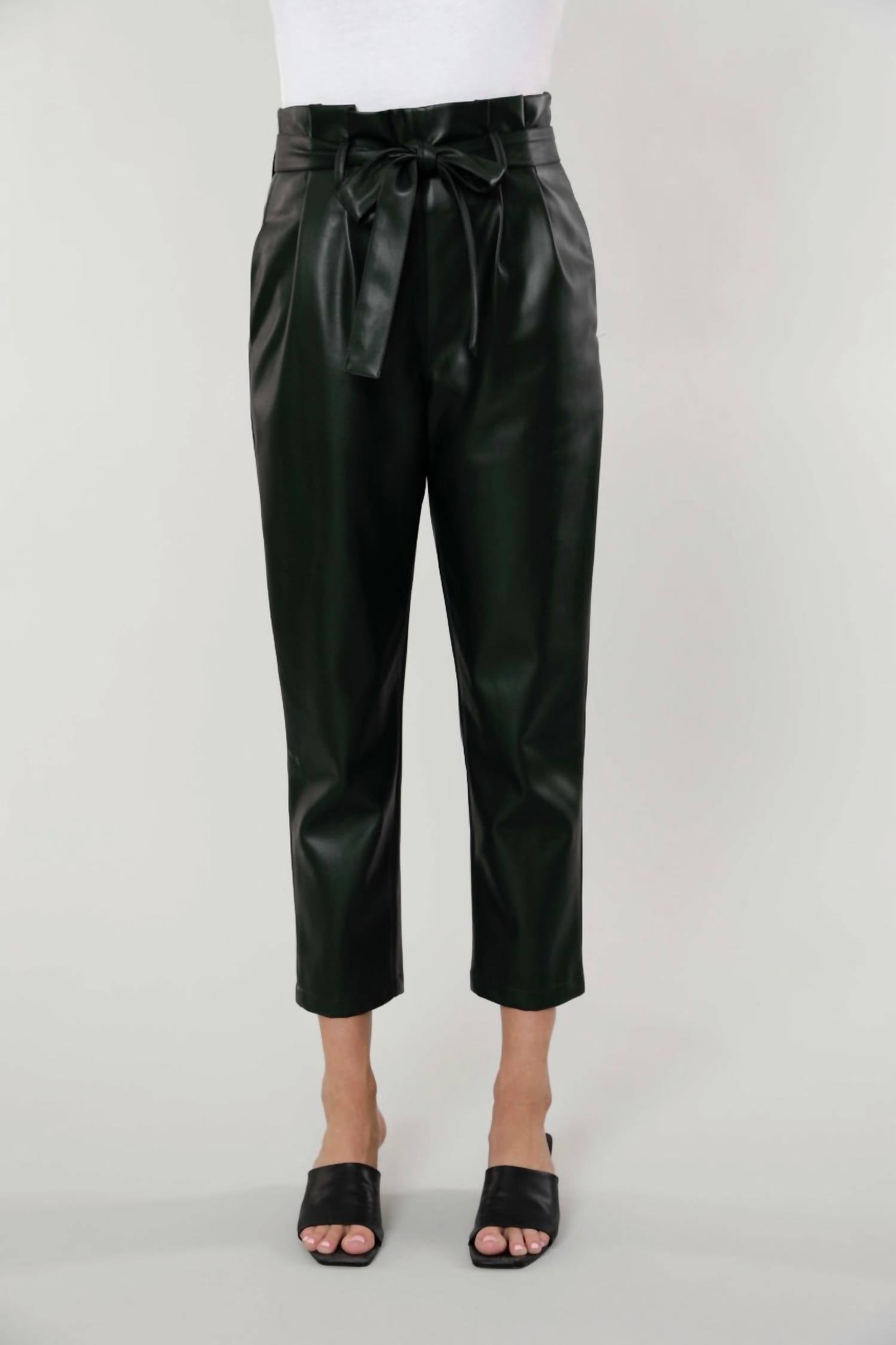 A straightleg pant that workes season after season. Dress these up with your favorite blouse or keep it casual with your go-to tee.Faux leather. Relaxed belted tie-waist. Mid-rise. 100% Polyurethane. True to size. The model is 5 9” and wearing size S. Dry clean.