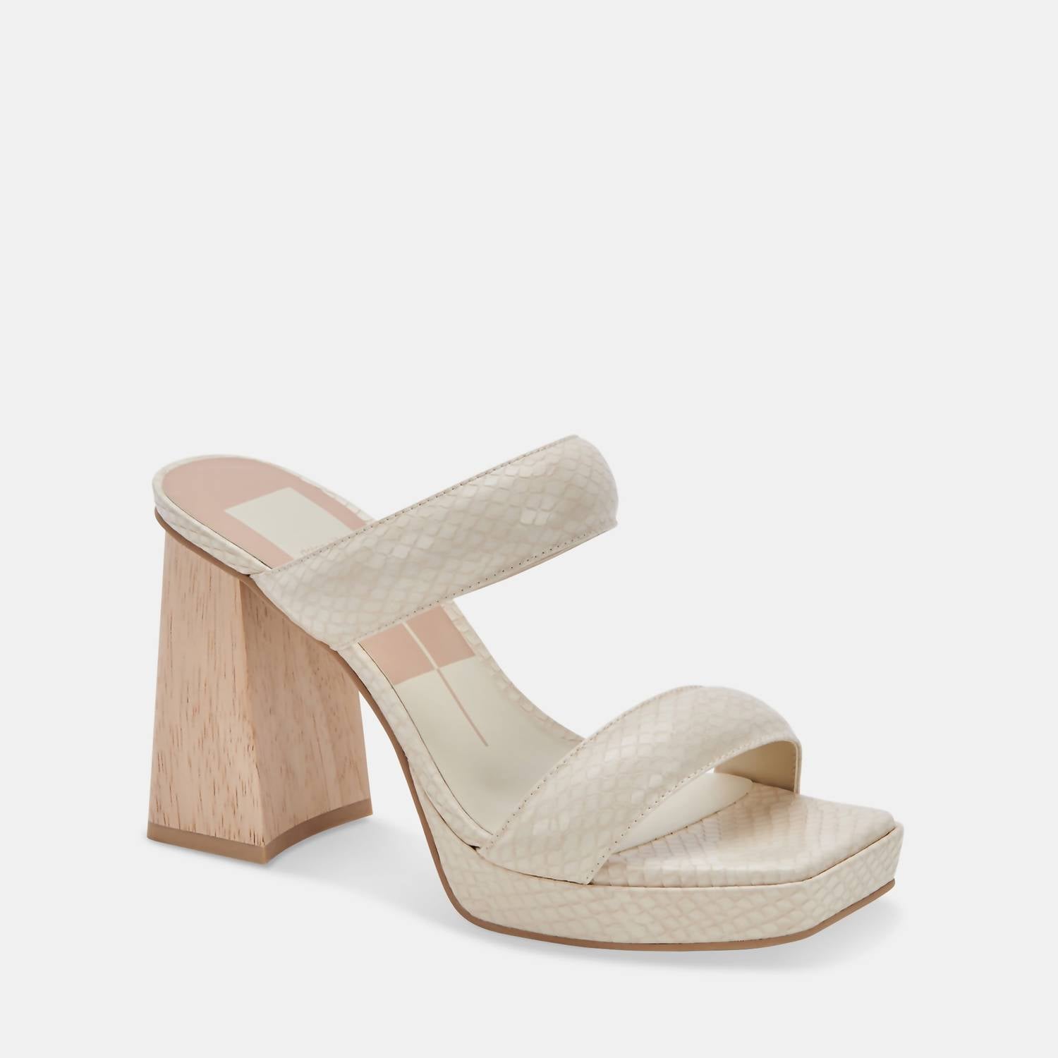 Don't be deceived, these heels are comfy as can be.Snake-embossed accents, contrasted with a woodgrain block heel. Synthetic Upper. Synthetic Outsole. Synthetic Sock. Synthetic Lining. 4" Heel Height