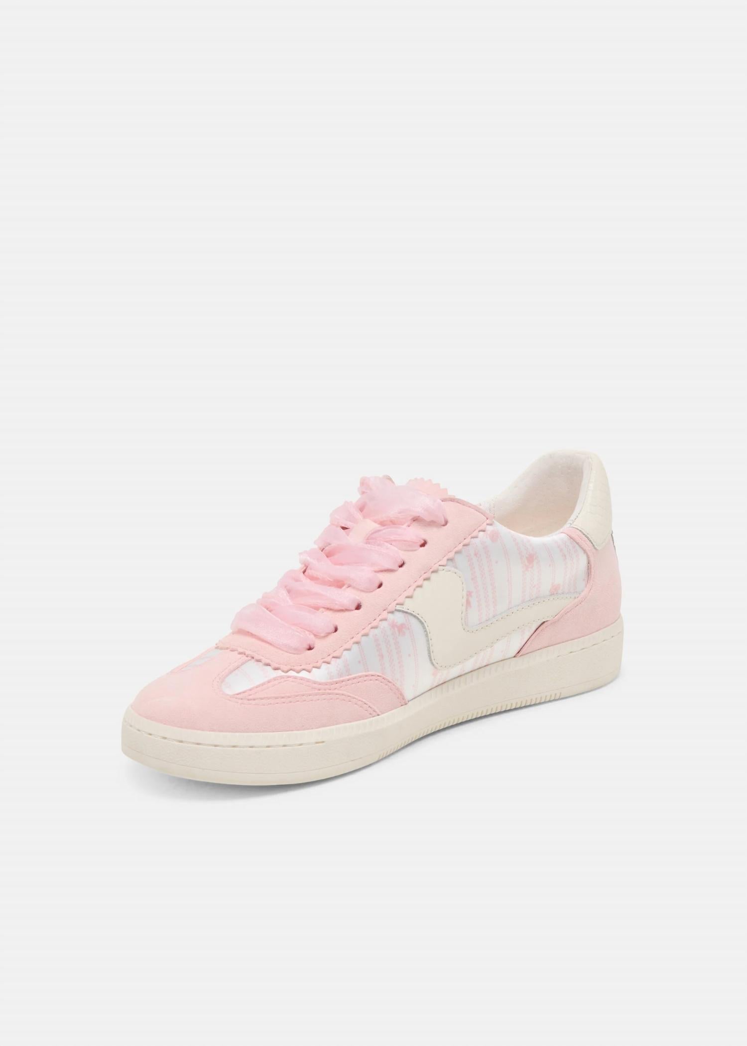 Introducing the Women's X Byrdie Golf Sneakers by Dolce Vita, where sporty meets vintage style in Pink Floral Nylon. These sneakers feature a leather and textile upper and a recycled synthetic outsole, offering both durability and eco-friendly appeal. Enjoy the flexibility of two lace options—satin and curly organza—and a removable insole with a 1" back height and 0.3" front thickness for personalized comfort. Care for these imported sneakers with ease, and revel in their perfect balance of elegance and functionality.