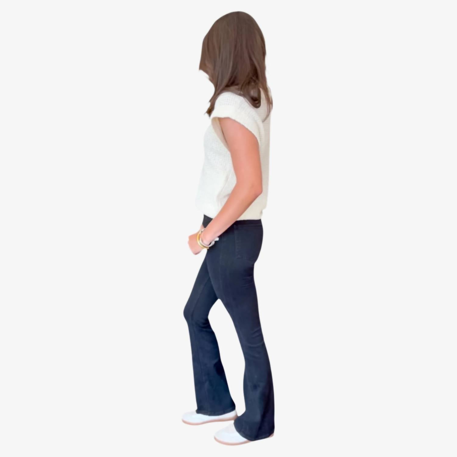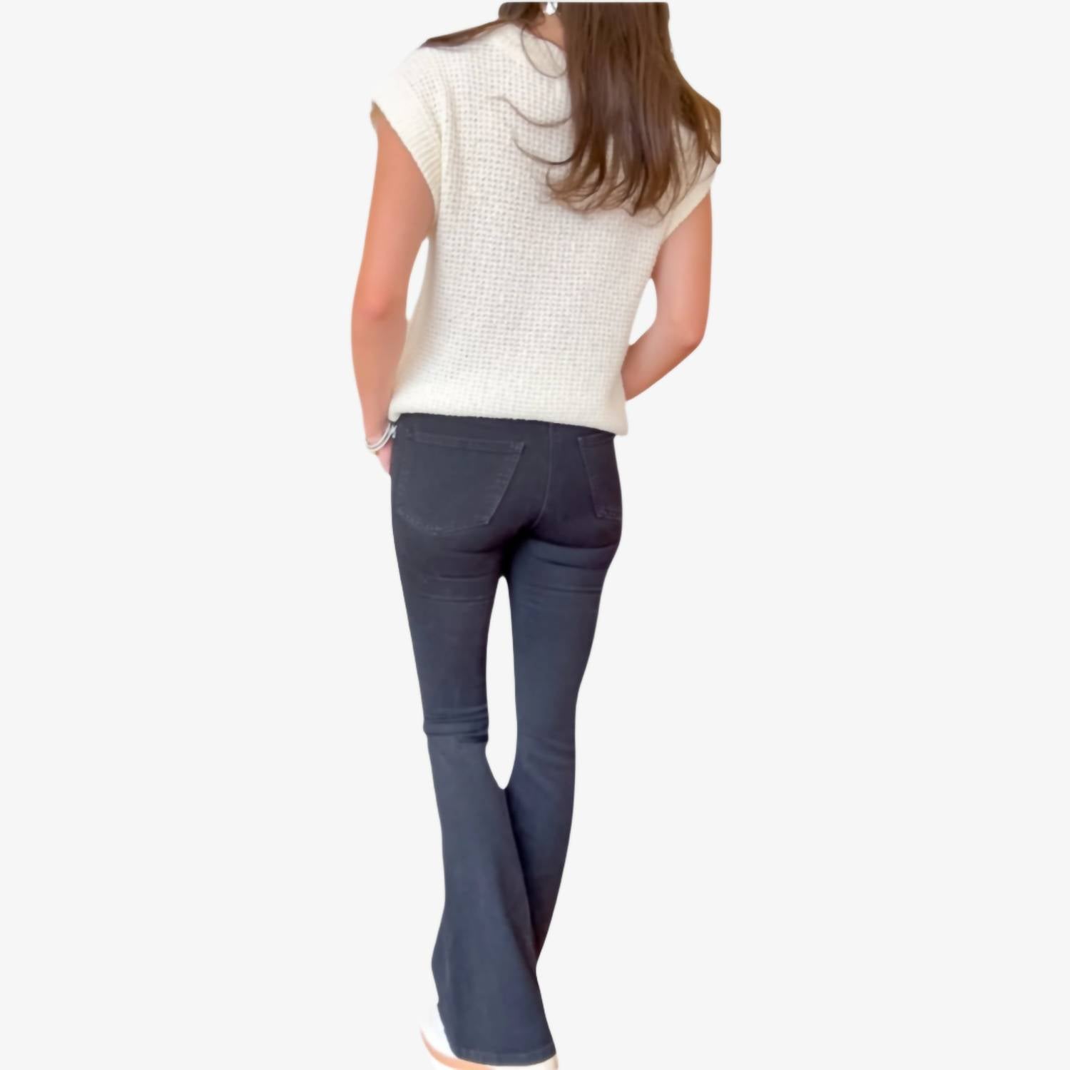 Just as cute as they are comfortable. Introducing the High Rise Flare Jeans by Dolly Parton, your ideal denim choice for a modern yet timeless look. These jeans feature a classic high rise waist and a flattering flared leg that offers a slim fit through the thigh. Made from a blend of 56% rayon, 25% cotton, 18% polyester, and 1% spandex, they promise comfort and style in a sleek navy blue, dark wash. Closure: Button and zip fly. Care: Hand wash, hang to dry.