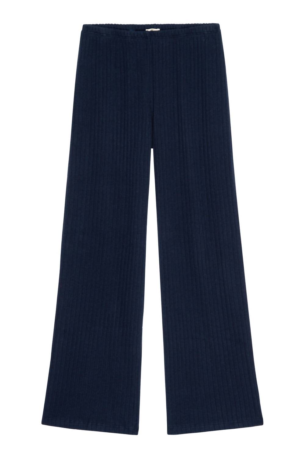Elevate your fall wardrobe with the Sweater Rib Simple Pants by DONNI, a perfect blend of comfort and style in chic navy. Crafted from a cozy cotton blend with a ribbed texture, these pants boast a mid-rise 10.25" waist and 29.5" inseam for a straight-leg silhouette. Designed for comfort with an elastic waistband and pull-on closure, these minimalist pants are made in Los Angeles. Ideal for a holiday party or Thanksgiving gathering, they're the epitome of understated elegance.