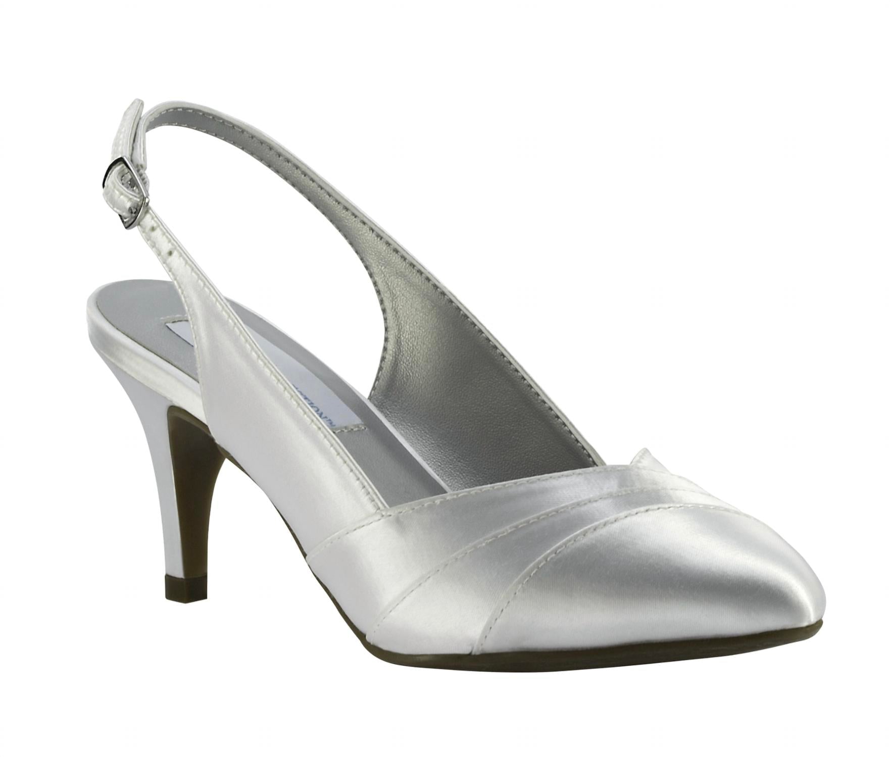Pair these beauties with your favorite skinny jeans or dress for a night out on the town. Women's silver satin slingback pumps feature a classic and feminine silhouette with a sleek pointed toe, a low to mid-height kitten heel for comfortable lift, a polished satin finish for elegant appeal, and an adjustable slingback strap with a buckle for a secure and customized fit.