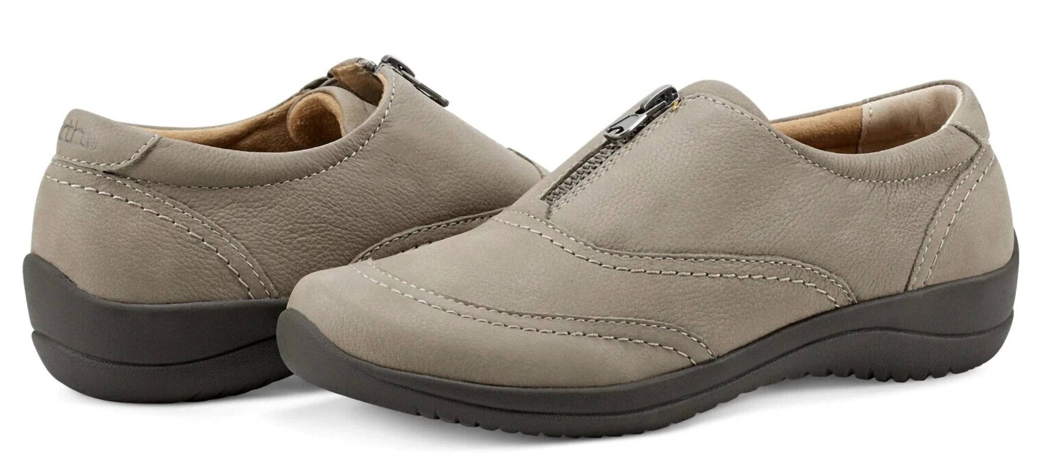 Loafers so versatile you can wear them with just about anything.Supreme comfort, responsible design, effortless style, the earth Fannie casual flat has all three. It features a stylish round toe, a front zipper and extra arch support. Plus, it offers a recycled lining and comfortable memory foam cushioning. Extraordinary comfort for everyday pursuits.