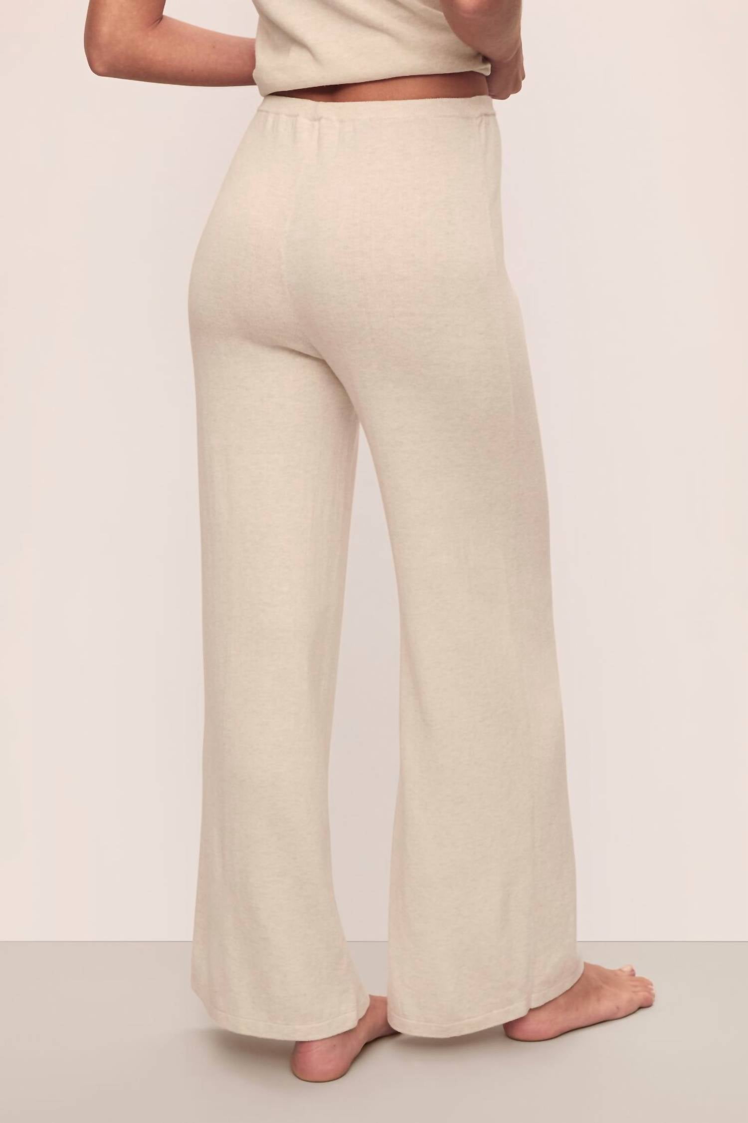 Embrace relaxed elegance with the Fine Gauge Sweater Pants by Eberjey, crafted from a cotton blend with Naia™ Acetate for comfort and sustainability. These high-rise, wide-leg pants in Almond Heather feature a pull-on elastic waistband, ensuring a relaxed and comfortable fit. 55% Cotton, 45% Naia Acetate. Machine wash cold with like colors, use only non-chlorine bleach when needed, then lay flat to dry without ironing.