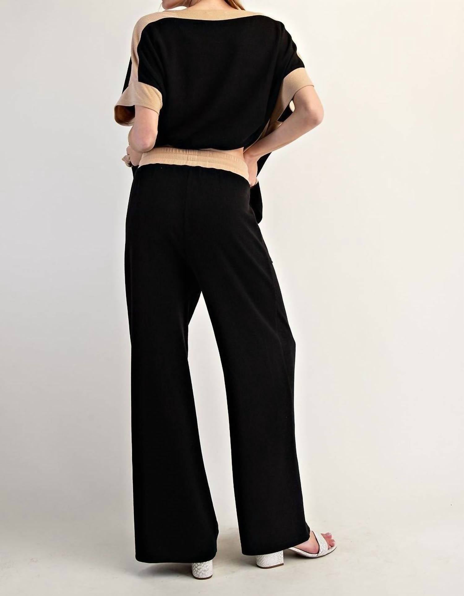 A straightleg pant that workes season after season. Dress these up with your favorite blouse or keep it casual with your go-to tee. Meet the Contrast Waist Straight Leg Pants by ee:some, your go-to for a relaxed, lounge-ready style in timeless 90s fashion. Featuring a comfortable pull-on closure, these pants are crafted from a textured ribbed knit with 95% Polyester and 5% Spandex for easy movement. The straight leg design is complemented by an adjustable drawstring waistband with contrast trim, and two oversized front patch pockets add functionality. Ideal for vacation or casual Thanksgiving gatherings, these women's mid-rise pants effortlessly blend comfort and trend.