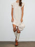 The Cora Mini Dress by ee:some is a chic cream shift dress featuring romantic cap flutter sleeves and a stylish stand-up collar. Made from a 50% Cotton and 50% Modal blend, this dress ensures comfort while maintaining a sleek silhouette. This versatile piece offers functional pockets and a button-front placket adorned with delicate vertical ruffles, capturing an effortlessly feminine appeal. Closure: Button closure. Available in bust sizes S: 34”, M: 36”, L: 38” and lengths S: 33”, M: 33.5”, L: 34”.