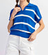 Boost your wardrobe with the Say Please Top by ee:some, available in chic blue stripes, perfect for a 90s-inspired look. This short sleeve tee features a collared split neckline and offers an oversized, relaxed fit. Crafted from a blend of 63% viscose and 37% nylon, the top ensures comfort and style, and it is convenient for machine washing. Closure: Pull-on design. The bust measurements are Small (40"), Medium (42"), and Large (44").