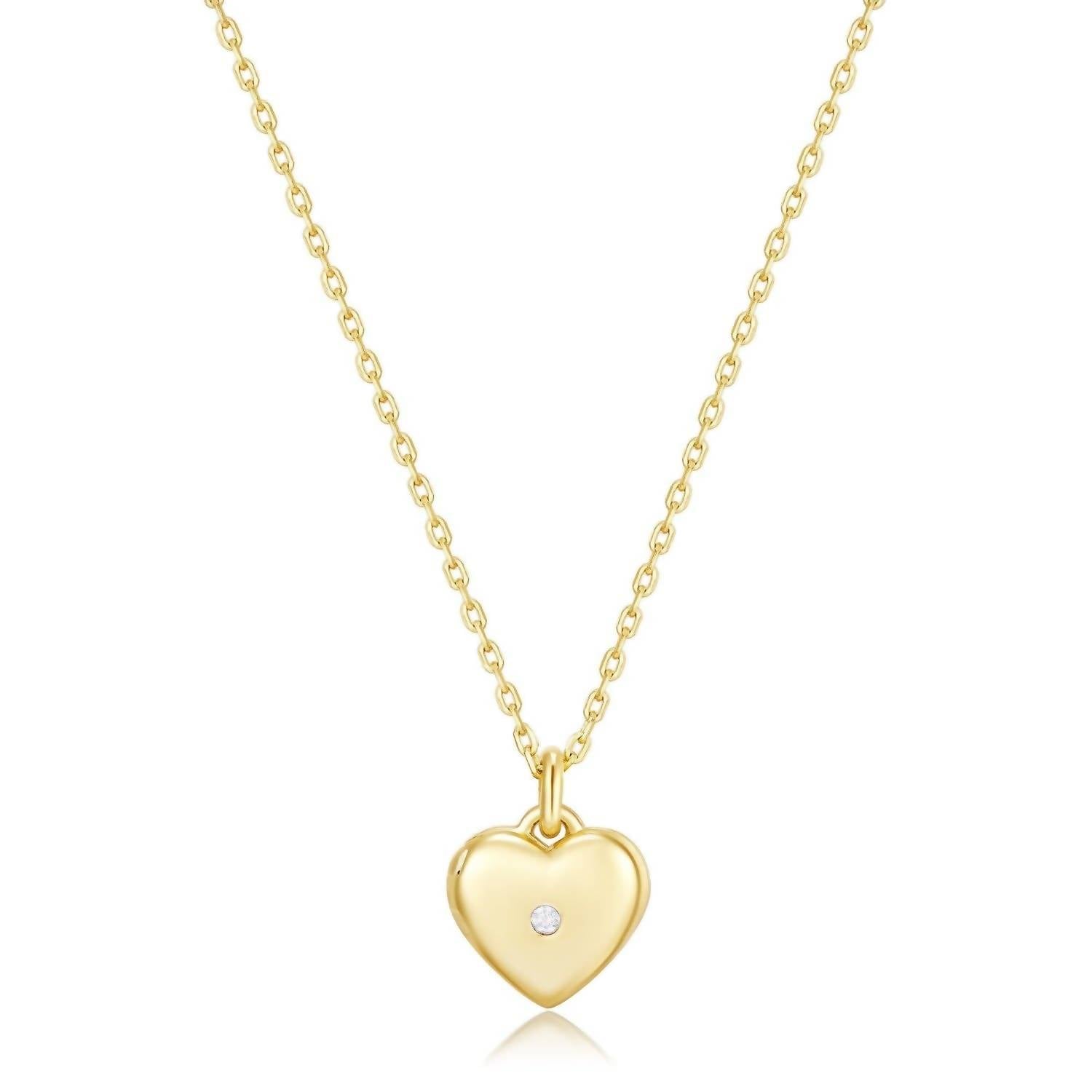 Layer this necklace or wear it on its own. Either way it's a win-win. Introducing the Small Heart Necklace by Eklexic, a stunning piece crafted in 14K gold-plated sterling silver complemented by a delicate cubic zirconia. The necklace is designed with a heart locket that measures 10mm wide and 3.2mm thick, featuring a solitaire 1.5mm cubic zirconia. Ideal for layering or wearing solo, it comes with a versatile necklace length of 16 inches plus a 2-inch extension. The perfect mix of elegance and style, this piece promises to enhance any ensemble.