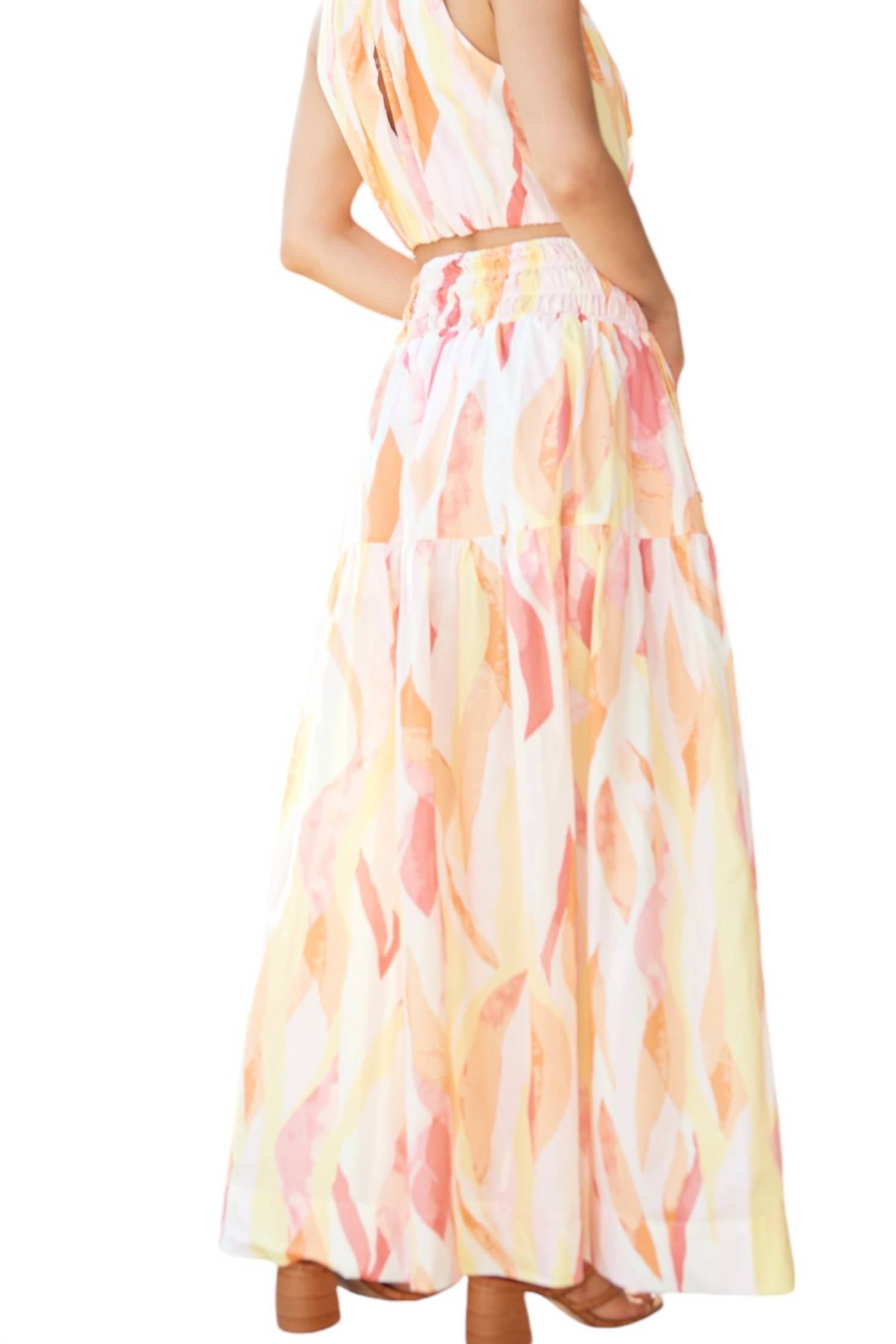 Flowy, comortable and stylish. This maxi skirt is a fan favorite.Vibrant orange. Timeless leaf print. Smocked waist for a comfortable fit. Maxi length skirt. 100% Polyester.