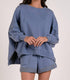 Introducing the Avery Crewneck Top by ELAN, a perfect blend of cozy comfort and boho-chic style in solid navy. This minimalist piece features a classic crewneck and long oversized sleeves, ideal for staying warm with grace. Composition: 100% Cotton. Closure: Pull-on styling.