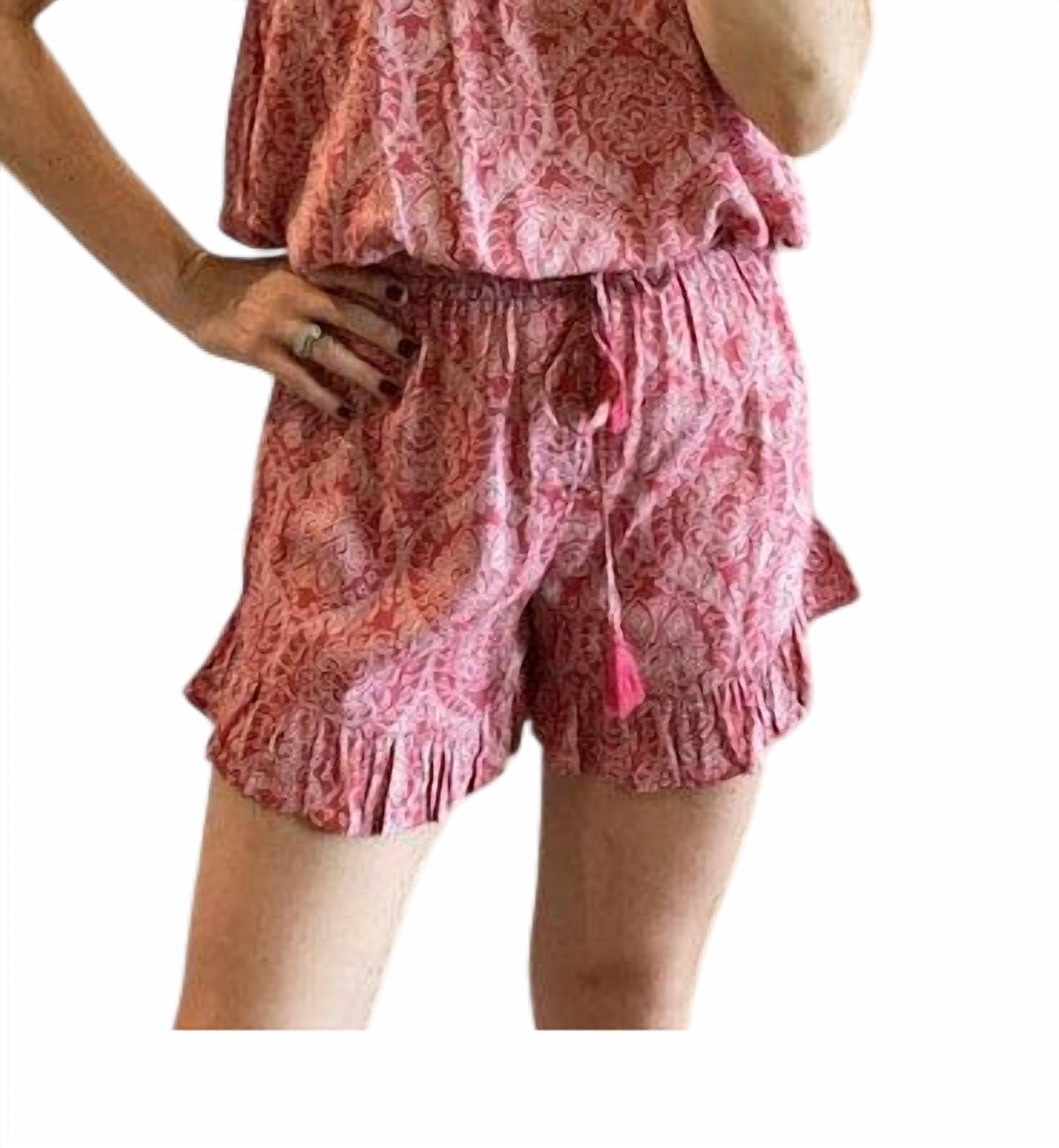 The cutest skort that combines style and functionality. Presenting the Bandana Print Short by ELAN, a stylish addition to any wardrobe with its vibrant red and white bandana print. These flowy skorts are designed for women and feature an elastic waist for added comfort and a playful ruffle hem. Enjoy the patterned allure without the fuss of pockets. The tie closure ensures a perfect fit, while the absence of an inseam gives it a relaxed, airy feel.