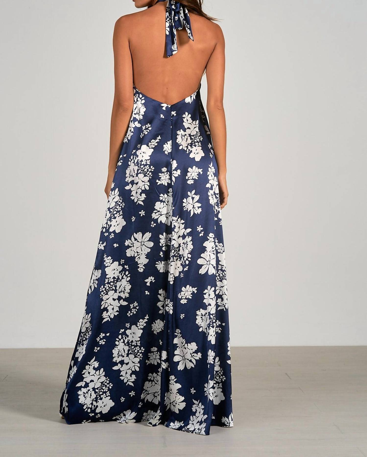 Style this maxi with your favorite statement necklace and sandals for the perfect look. Introducing the Capri Floral Halter Maxi Dress by ELAN, a stunning summer essential in a vibrant floral print. This sleeveless kaftan silhouette dress in luxurious satin-poly blend features a modern halter neckline and a sophisticated low back. The dress comes with a convenient tie closure for a customizable fit and is perfect for any summer event or vacation. Care instructions include hand washing and laying flat to dry to maintain its quality and elegance.