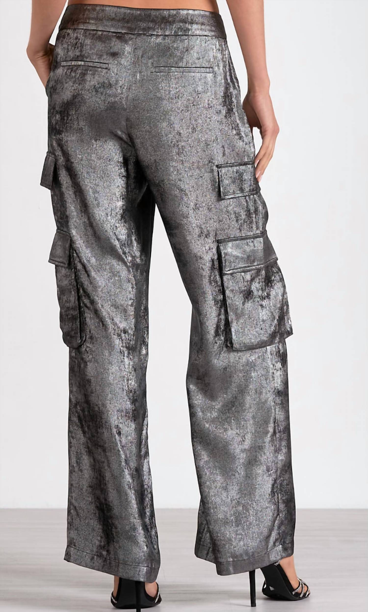 Cargo Pant By ELAN. Striking Silver Hue For Festive Style. Solid Pattern With Practical Pockets. Button Closure For Functionality. Versatile Addition To Any Outfit.