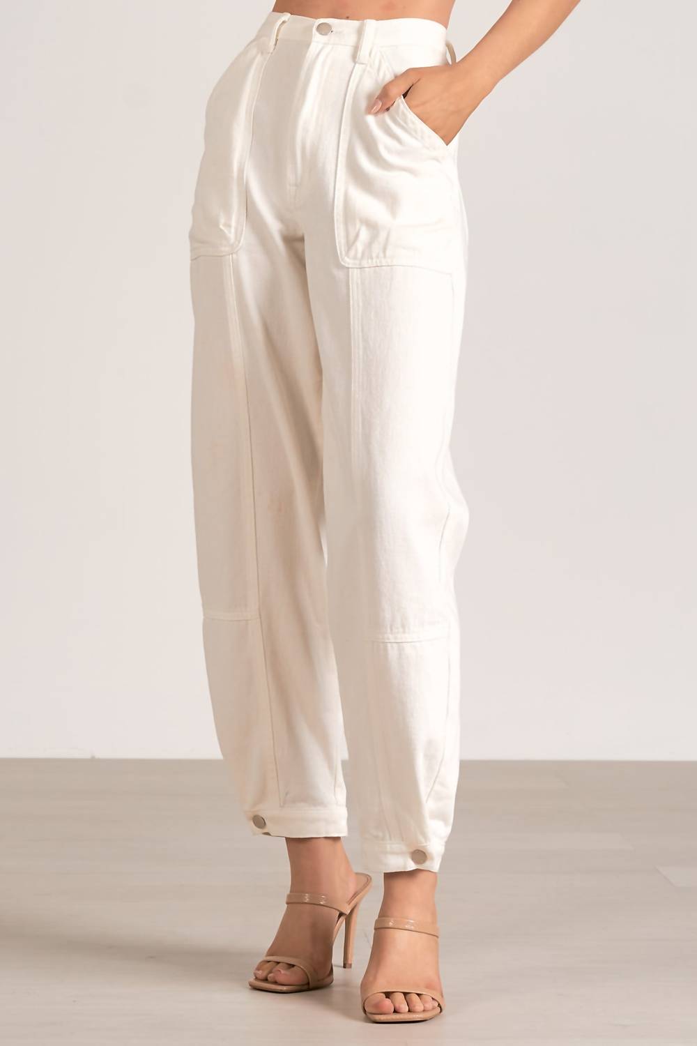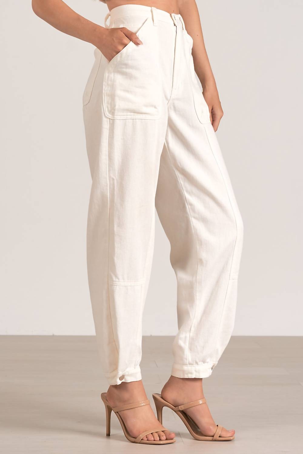 This straightleg pant is both stylish and comfortable. Did we mention the fit is perfection? Introducing the White Cargo Pants by ELAN, where functionality meets style. These straight leg pants feature cargo pockets for added utility. Closure: Button. Pattern: Solid. Perfect for any occasion, they add a touch of sophistication to your look.