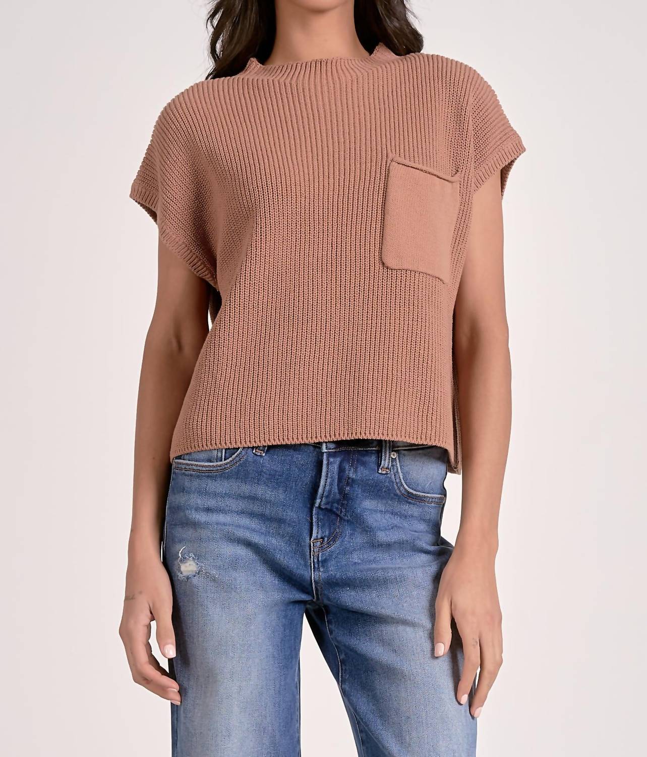 Elevate your casual look with the Carly Sweater Top by ELAN, a charming piece in a playful mauve shade. Featuring cap sleeves and a textured pattern, this 100% cotton sweater includes a practical pocket detail. Its pull-on design and crewneck offer comfort and ease.