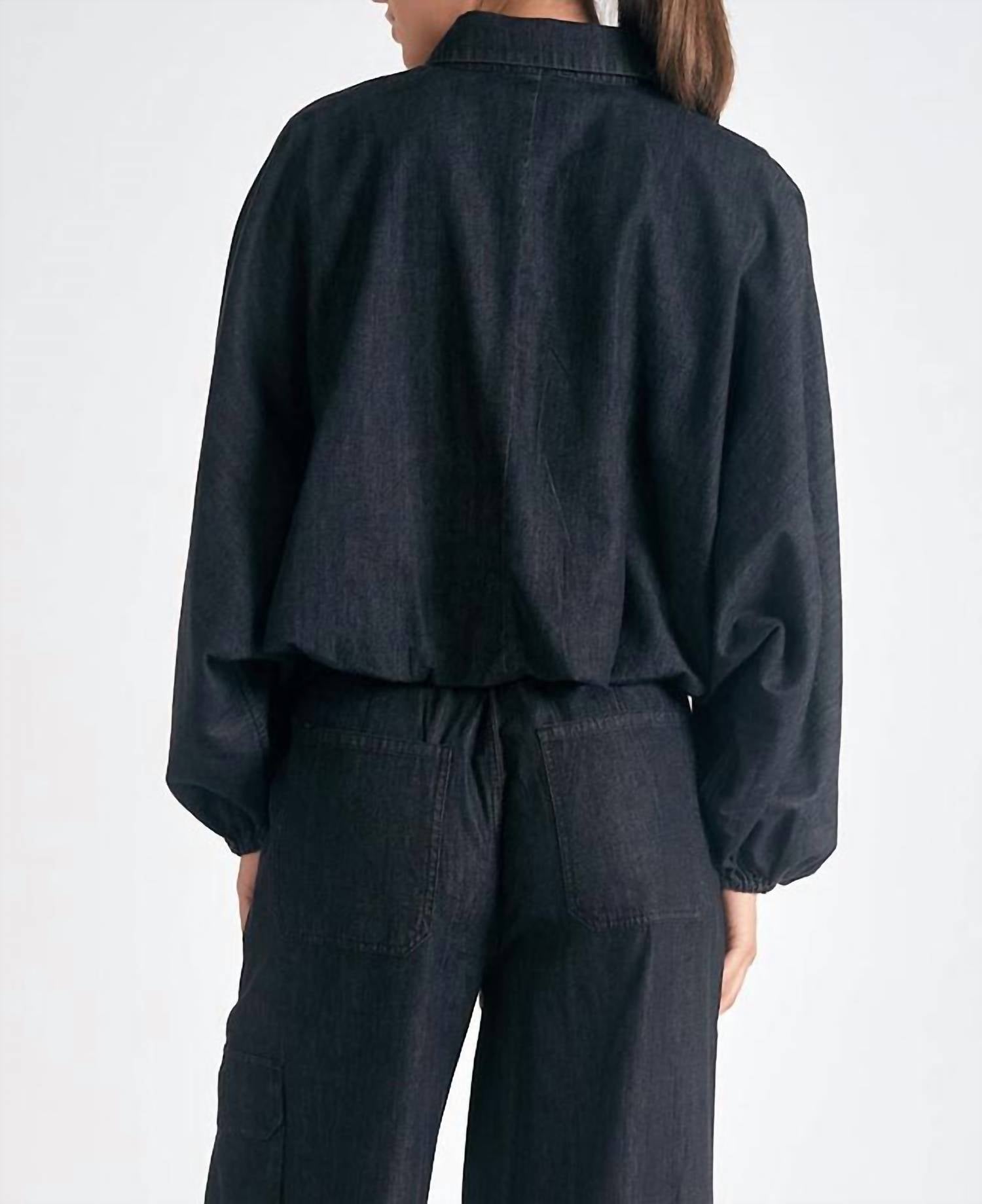 A classic button down shirt that will never go out of style. Introducing the ELAN Cheri Blouse, a stylish black button-down with bubble long sleeves to enhance your playful, quirky look. Crafted from 100% cotton, this cropped blouse includes unique elastic sleeve details for that touch of flair. Closure: Button closure. Care: Hand wash lukewarm and warm iron as needed.