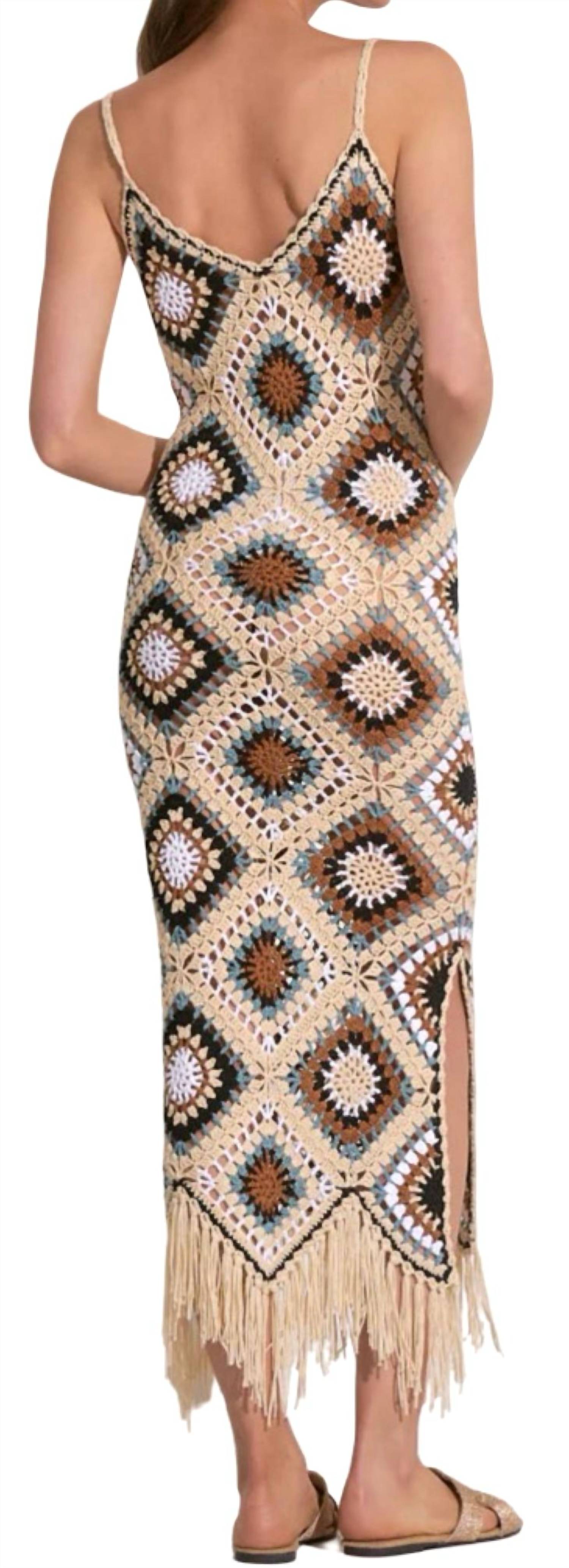 Just add slides or mules and you are good to go. Embrace timeless elegance with the Crochet Midi Tank Dress by ELAN, showcasing delicate spaghetti straps for a feminine touch. Crafted with an acrylic crochet knit that features a captivating geometric diamond pattern, this dress offers sophisticated style with its v-neckline and chic side slit. Originating from China, it pulls on effortlessly for ease of wear. Maintain its pristine look by hand washing and line drying. 100% Acrylic.