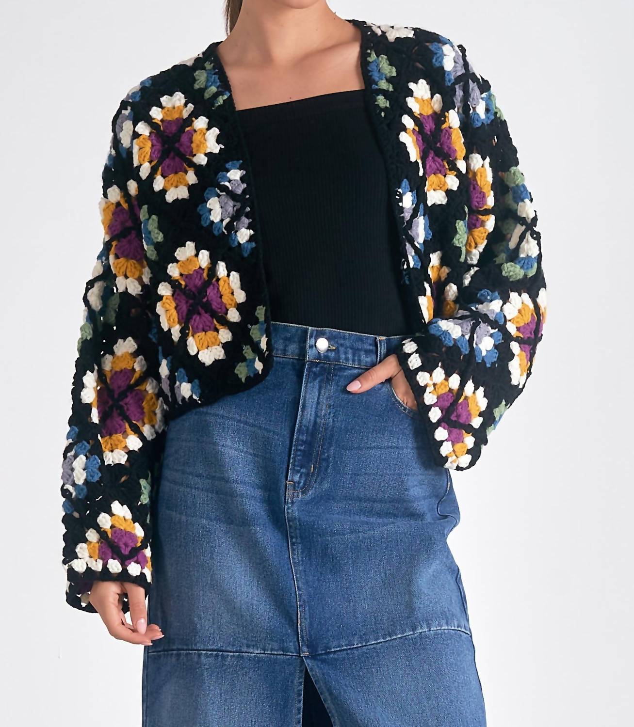 A classic fit that works just as good buttoned as it does left open. ELAN introduces the Crochet Sweater Cardigan, a striking piece crafted from 100% acrylic knit. This multi-colored cardigan features long sleeves and a collarless, open-front design for easy pull-on wear. Expertly imported, it effortlessly combines style with comfort. Ideal for adding textured charm to any wardrobe, it also includes pockets for practicality.