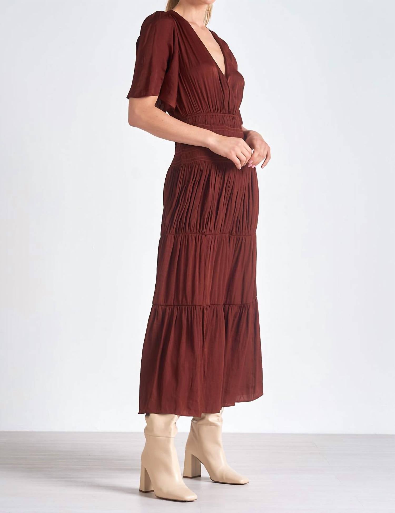 Unveiling the Brick Dress from Elan, a stylish A-line silhouette designed for women who appreciate elegance. This midi dress features three-quarter short sleeves and a flattering V-neckline, perfect for any occasion. Embrace the ease of a pull-on closure without the hassle of pockets. With a solid pattern, this piece is an essential addition to your wardrobe.