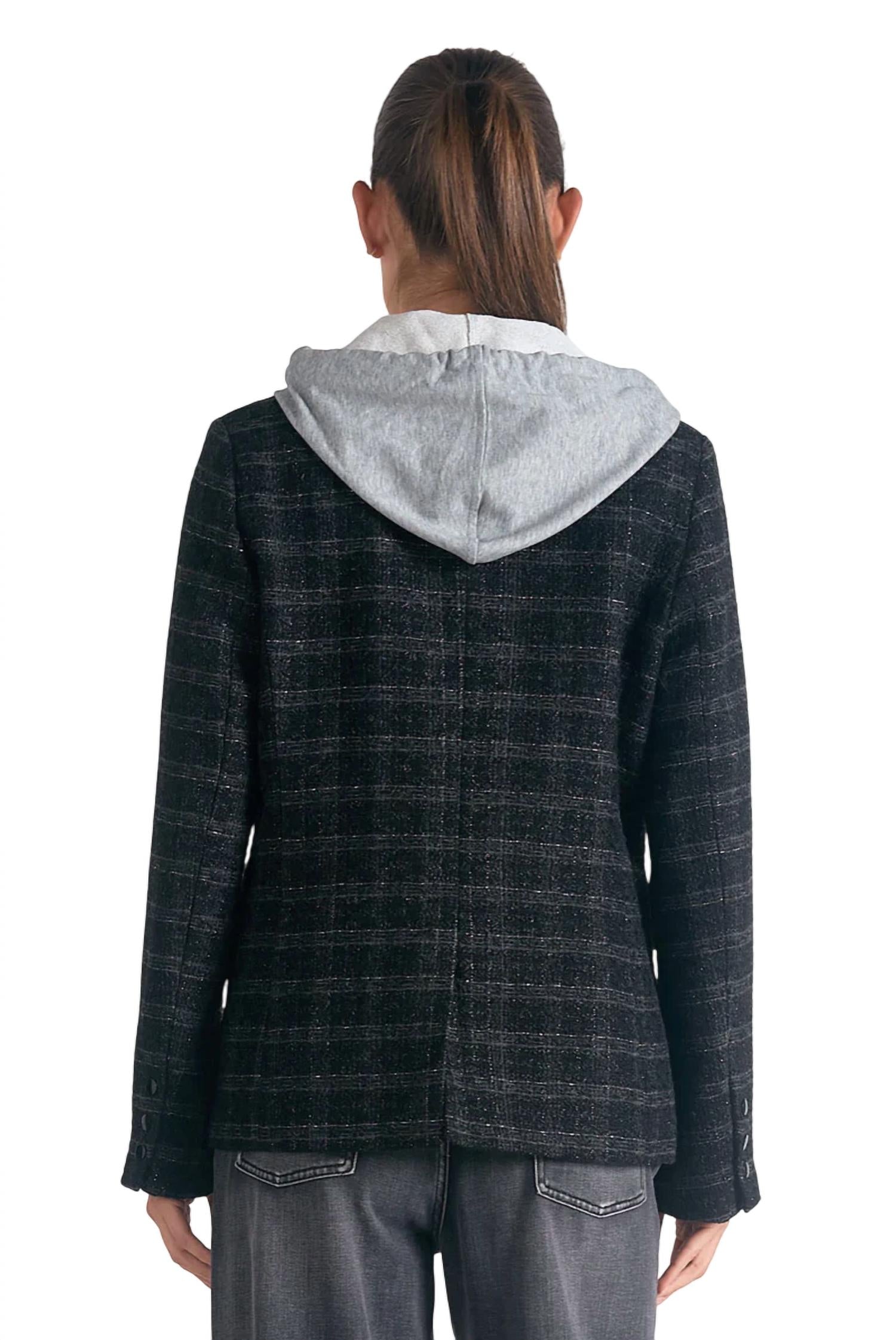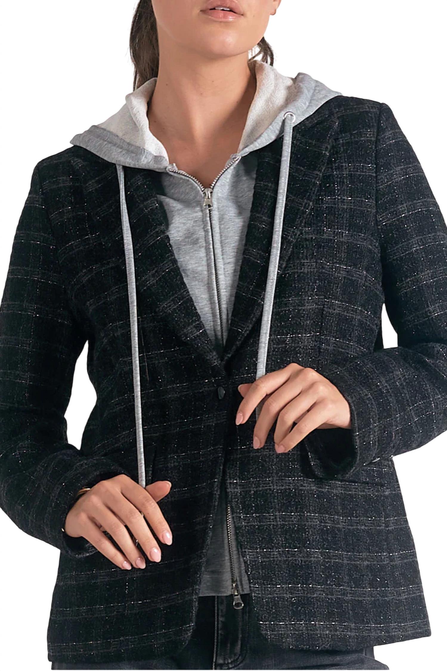 Elan - Eliza Metallic Plaid Blazer with Hoodie
