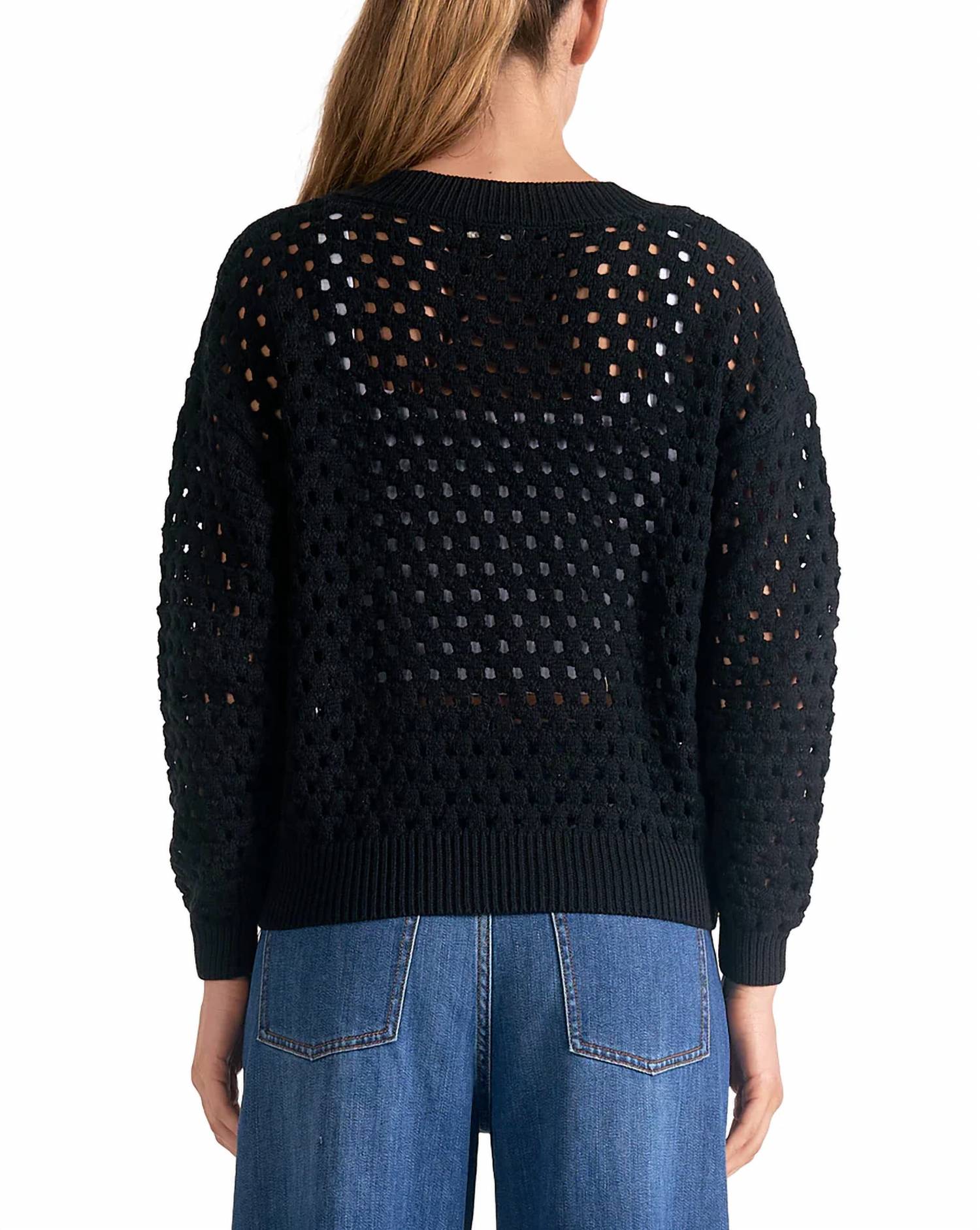This cardigan will be a sweater-rotation favorite. Offers long sleeves and crew neckline. Crafted from a blend of 55% Cotton and 45% Acrylic. Designed with a zip closure for easy wear and features a sophisticated eyelet pattern. Bomber jacket silhouette and crochet detailing make it an edgy yet chic layering piece. Hand wash cold and lay flat to dry.