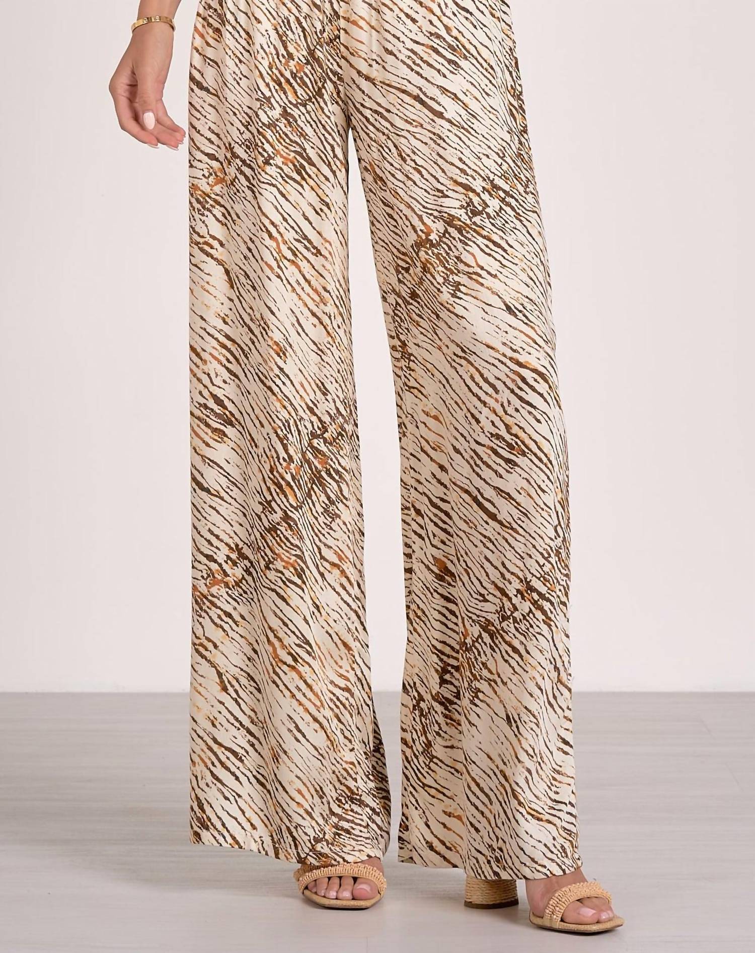 You'll be reaching for this best-selling legging all season long. Elevate your wardrobe with the Flowy Sahara Pant by ELAN, featuring a relaxed fit and a wide-leg design in a neutral Sahara hue with a subtle stripe pattern. The high-rise, elastic waistband ensures comfort and an effortless pull-on closure. Crafted from lightweight and flowing Modal, these pants are perfect for embracing the Boho Chic trend. For care, simply machine wash and line dry.