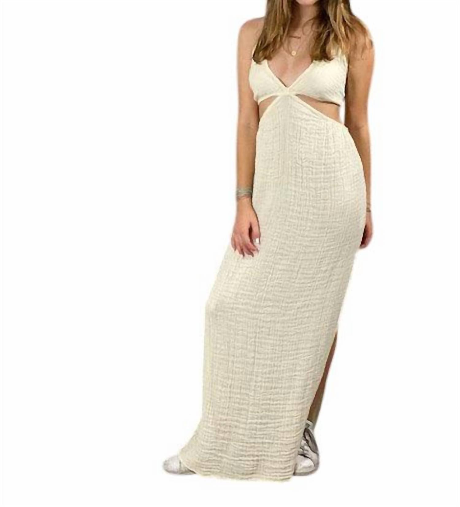 A maxi dress that is just as cute as it is comfortable. Discover the captivating Gauze Cutout Dress by ELAN, crafted for the modern woman in an enchanting off white. With delicate spaghetti straps and side slits, this maxi dress features a textured pattern complemented by a sweetheart neckline. The adjustable tie closure in the back offers a perfect fit while maintaining a graceful silhouette. Ideal for warm climates and stylish escapes, this piece will elevate your wardrobe with effortless elegance.