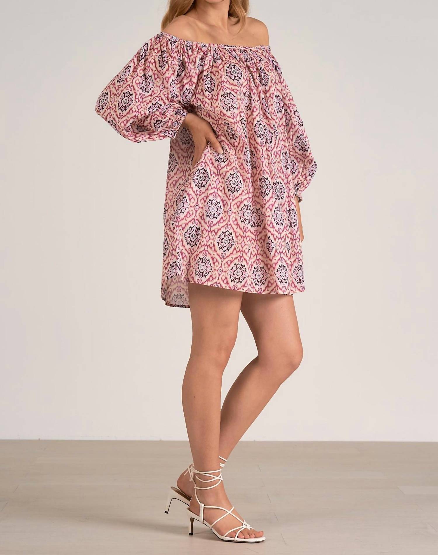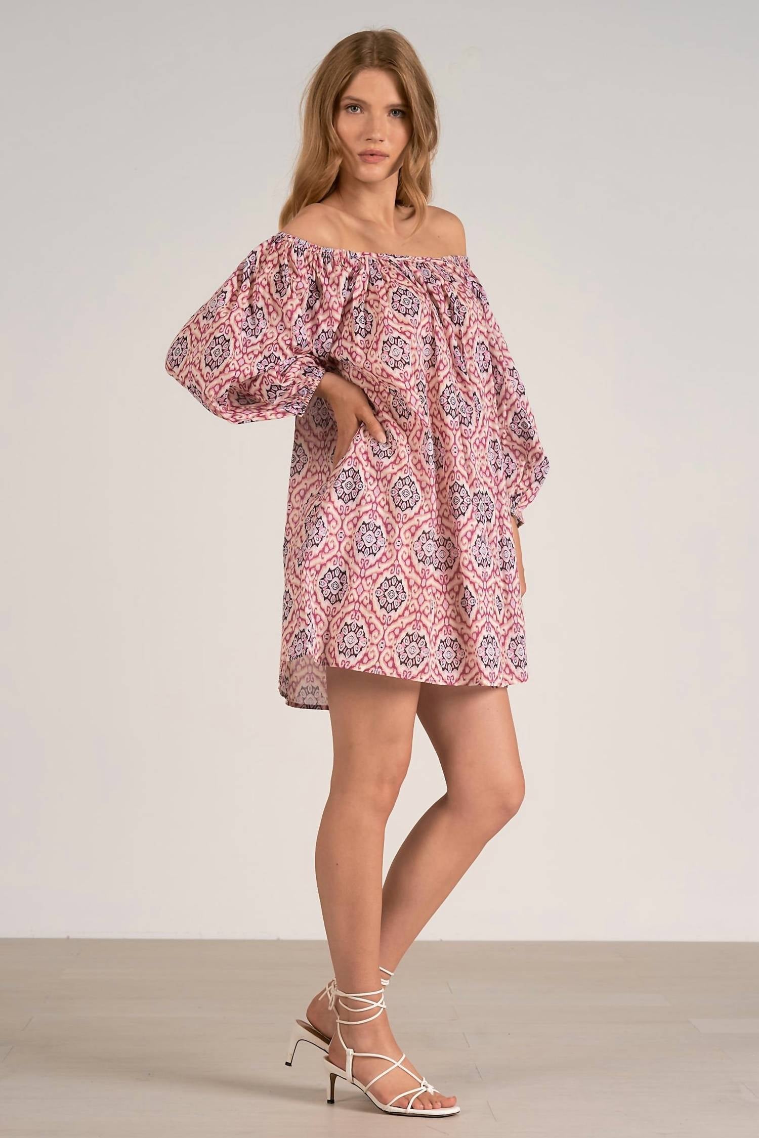 Pair with your favorite sandals for an effortlessly chic look. Introducing the Ikat Print Dress by ELAN, a chic and effortless casual dress in a lovely lavender hue. Designed with three-quarter sleeves and a flattering scoop neck, this shift silhouette dress offers a relaxed fit with convenient side pockets. Made entirely from 100% Cotton, it embraces comfort and easy styling with its pull-on closure. Perfect for a charming and versatile look.