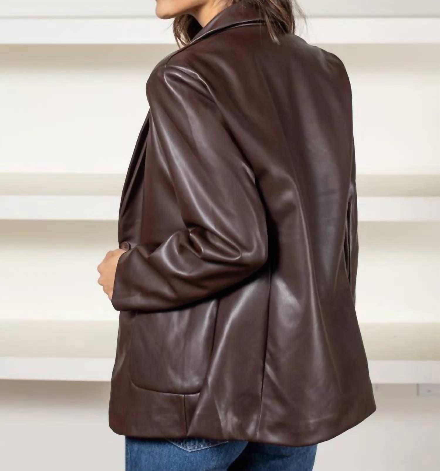 An elevated version of your favorite classic blazer. Leather blazer. Button closure. With pockets. Long sleeve.