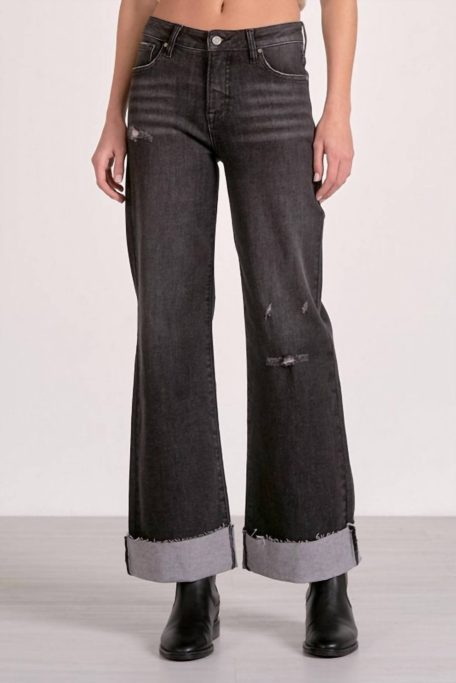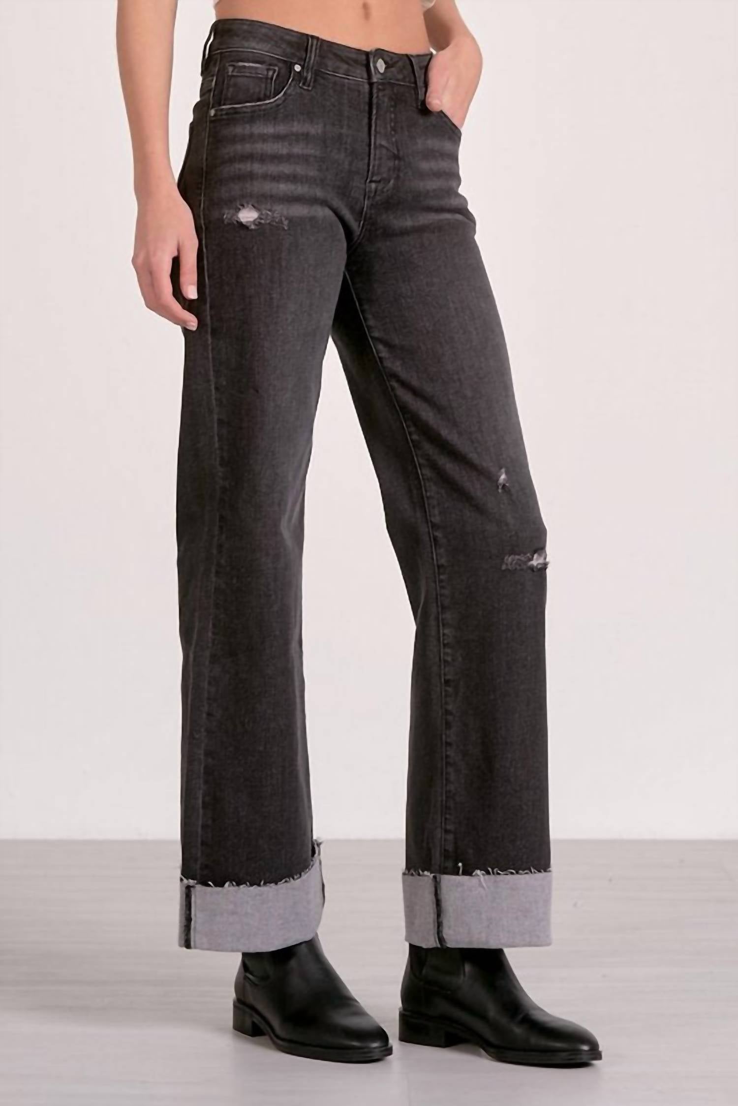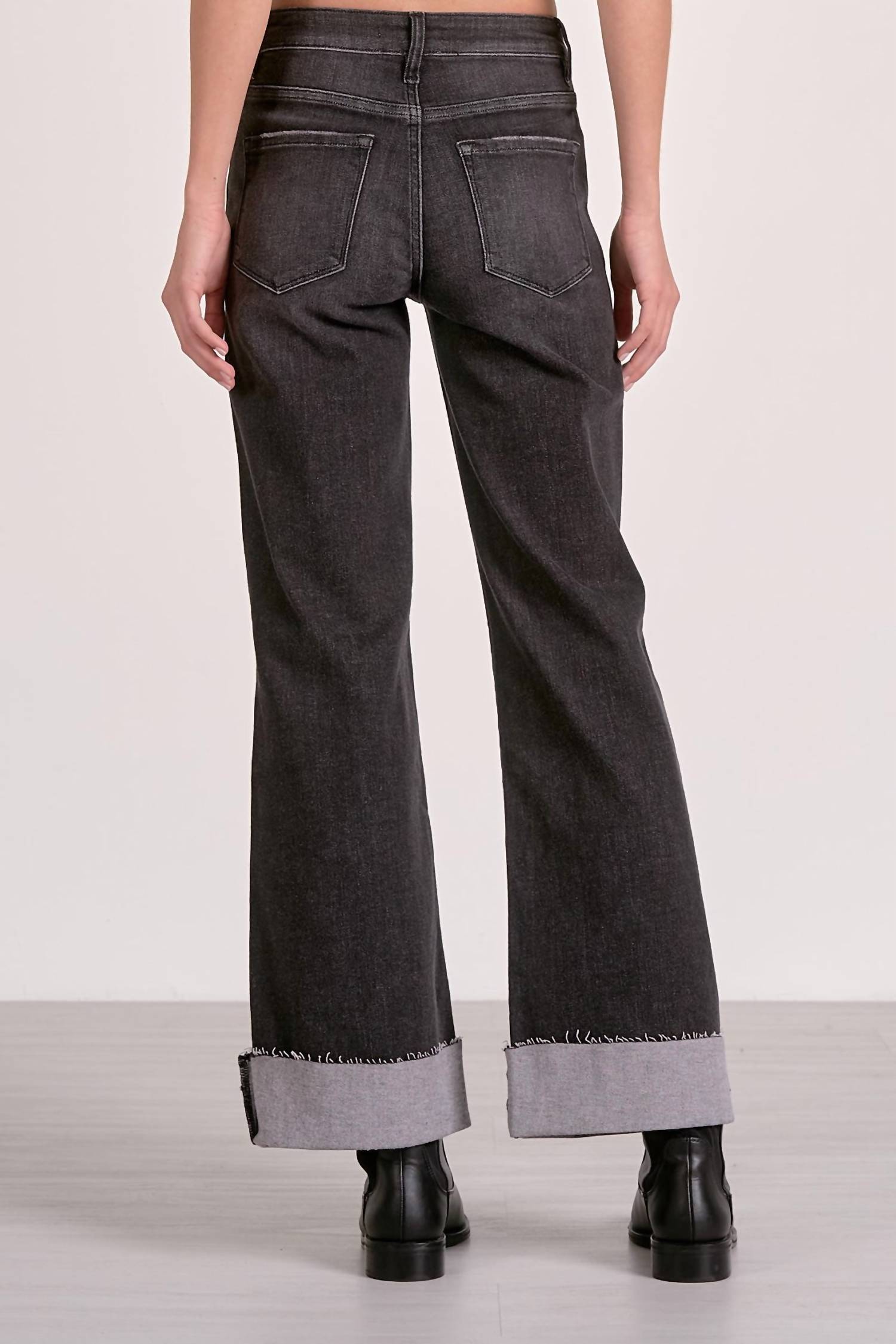 Just as cute as they are comfortable. Discover the Jackson Jeans by ELAN, a stylish nod to 90s fashion with a wide-leg silhouette. These Grey Wash jeans offer a flattering mid-rise waist and are crafted from a cotton blend featuring 92% Cotton, 7% Polyester, and 1% Spandex for ultimate comfort and mobility. Designed with a cuffed detailed bottom, they include essential pockets and a secure button closure. Care: Hand wash cold to maintain their vintage charm. Model is wearing a size small.