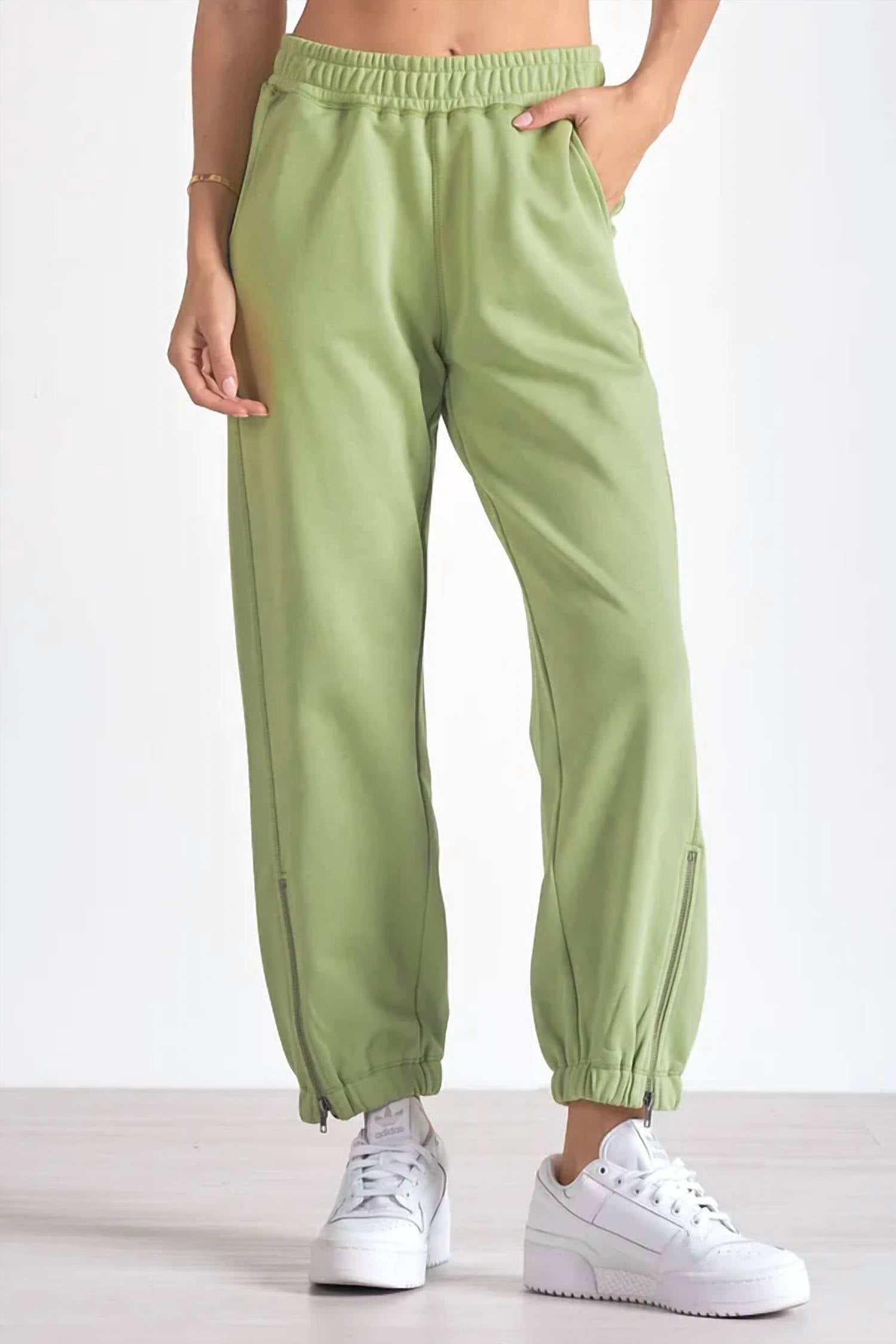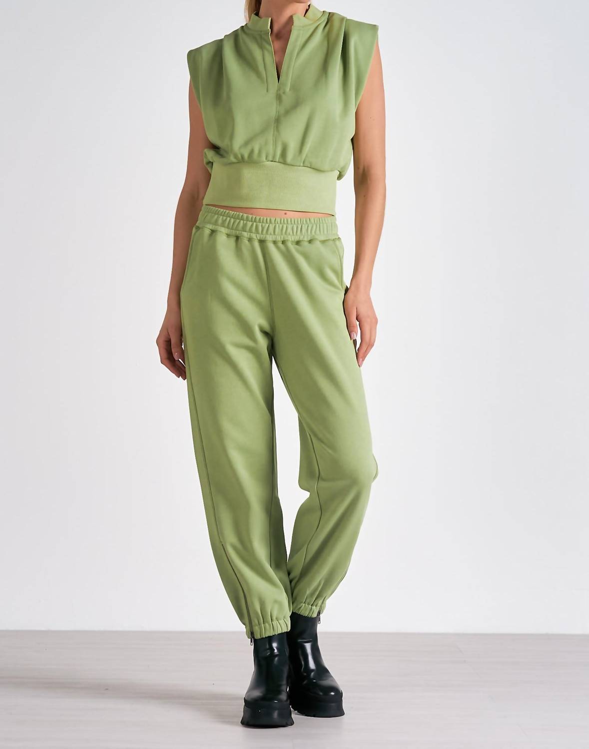The perfect pant for running around town and looking cool while doing it. Stylish elegant green jogger pants. Made from soft cotton for ultimate comfort. Designed with a comfort fit and high-rise waist. Ensure ease of movement with their pull-on closure. Combine functionality with a modern silhouette.