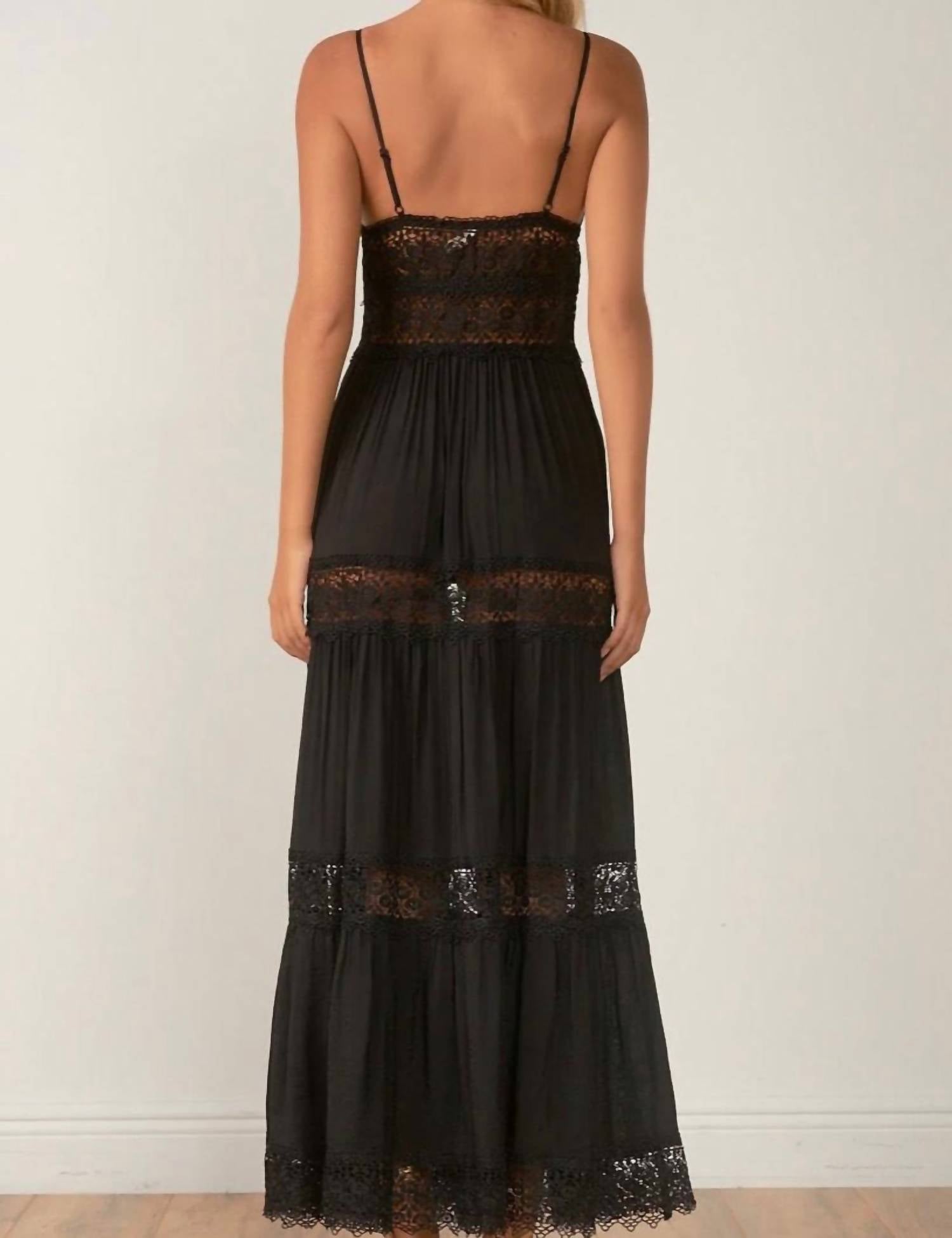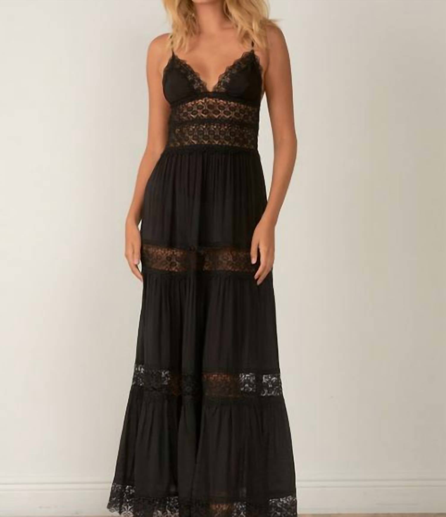 Style this maxi with your favorite statement necklace and sandals for the perfect look. 50% Viscose, 30% Polyester, 20% Polyamide. Plunge V-neck, low back. Sleeveless, adjustable spaghetti straps. Pullover style. Semi-sheer lace bodice. Maxi skirt with lace insets. Fits true to size, order your normal size. Designed for a floor-length look. Non-stretch fabric. Approx. 49" from high point shoulder to hem, based on a size small.