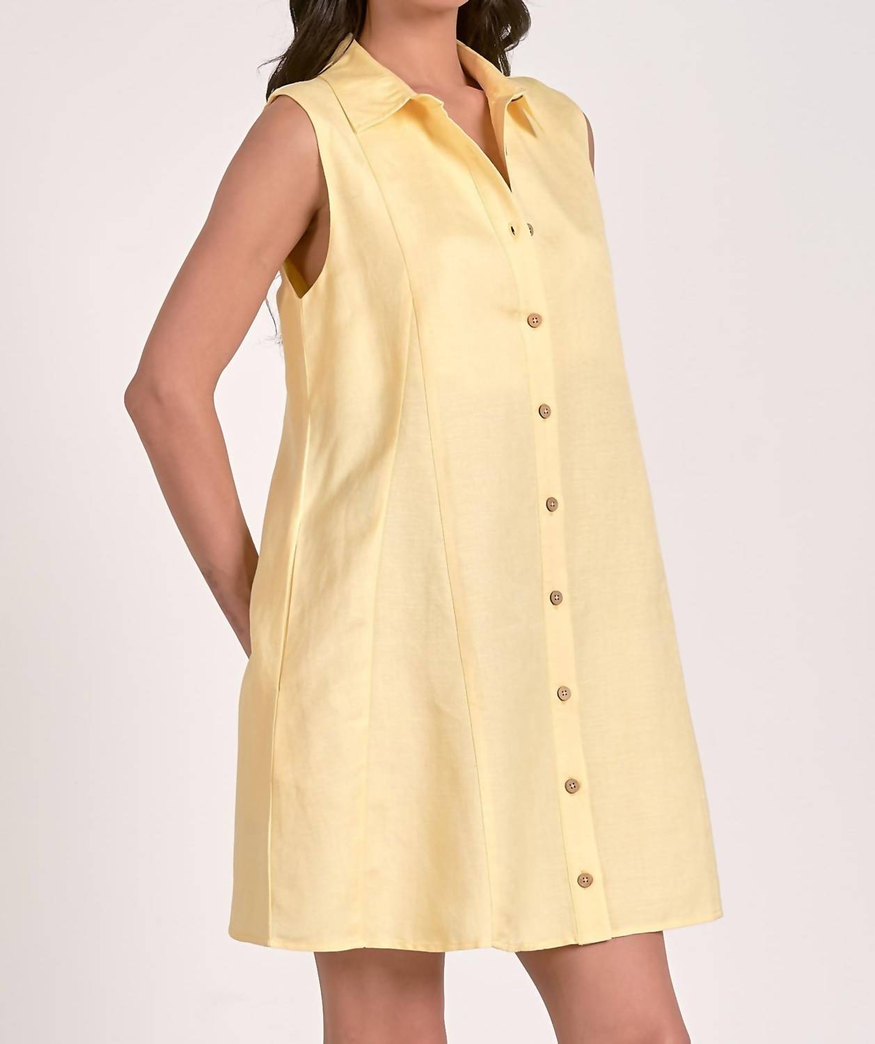 The perfect mini dress for those warmer months. This sleeveless button-down shirt dress features a classic collared neckline, wooden-style buttons, and a relaxed, flowy fit for effortless chic. Made from soft, lightweight fabric, it ensures all-day comfort and versatility, perfect for casual outings or styled with a belt and accessories for a polished look.
