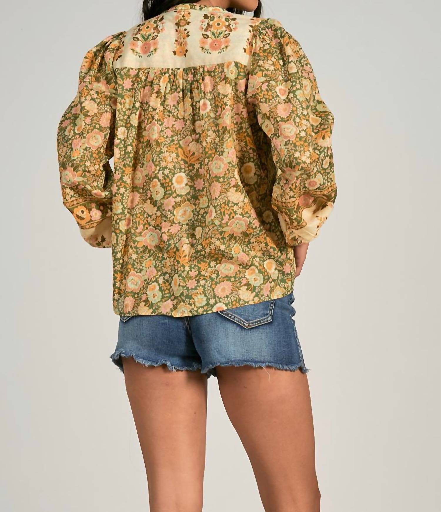 A timeless blouse that will never go out of style.100% cotton blouse. Floral print. Hand wash separately. Neck tie detailing.