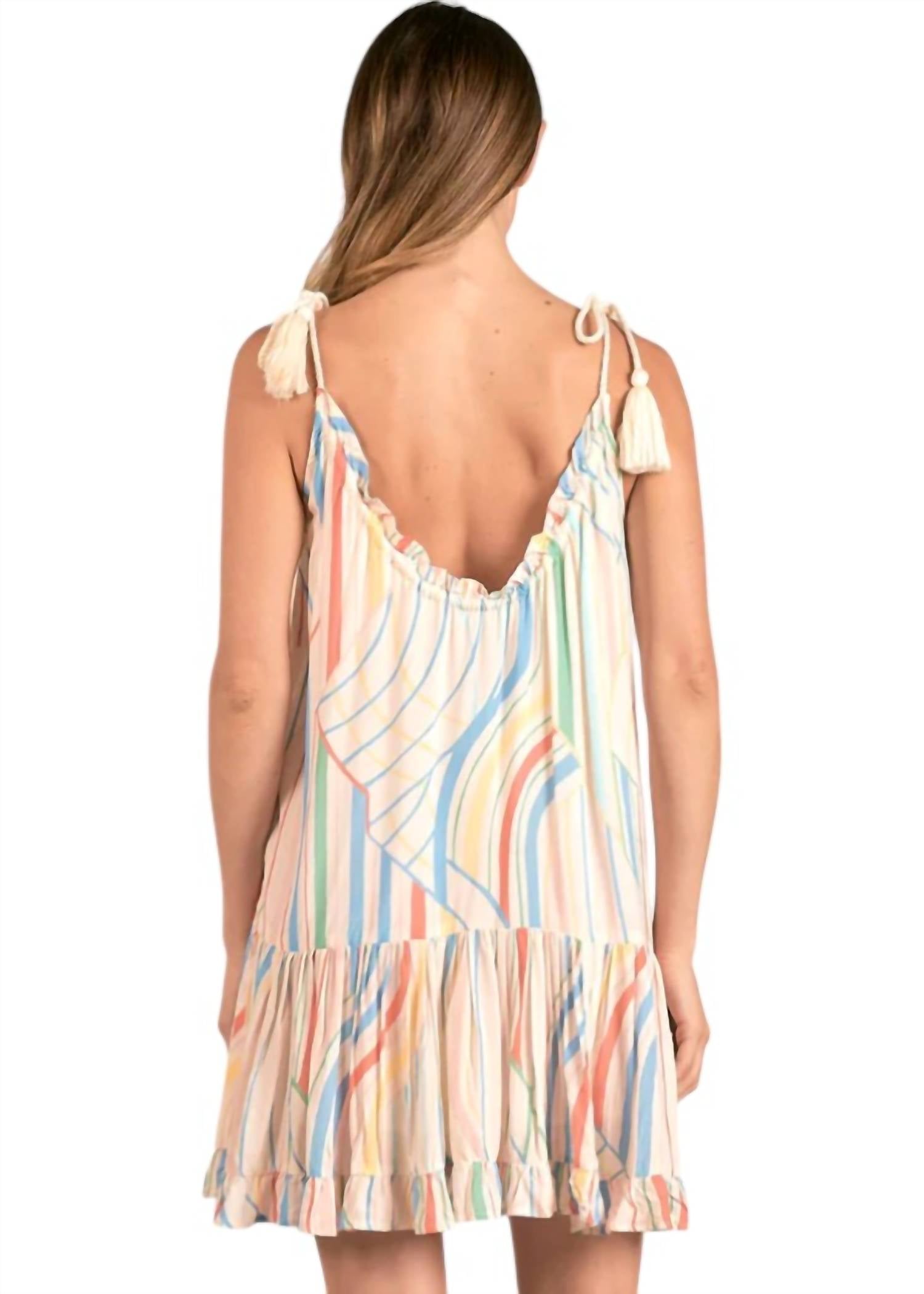 The perfect mini dress for those warmer months. This mini dress features spaghetti straps and a patterned design. It has a pull-on style and is made from 100% rayon. Hand wash.