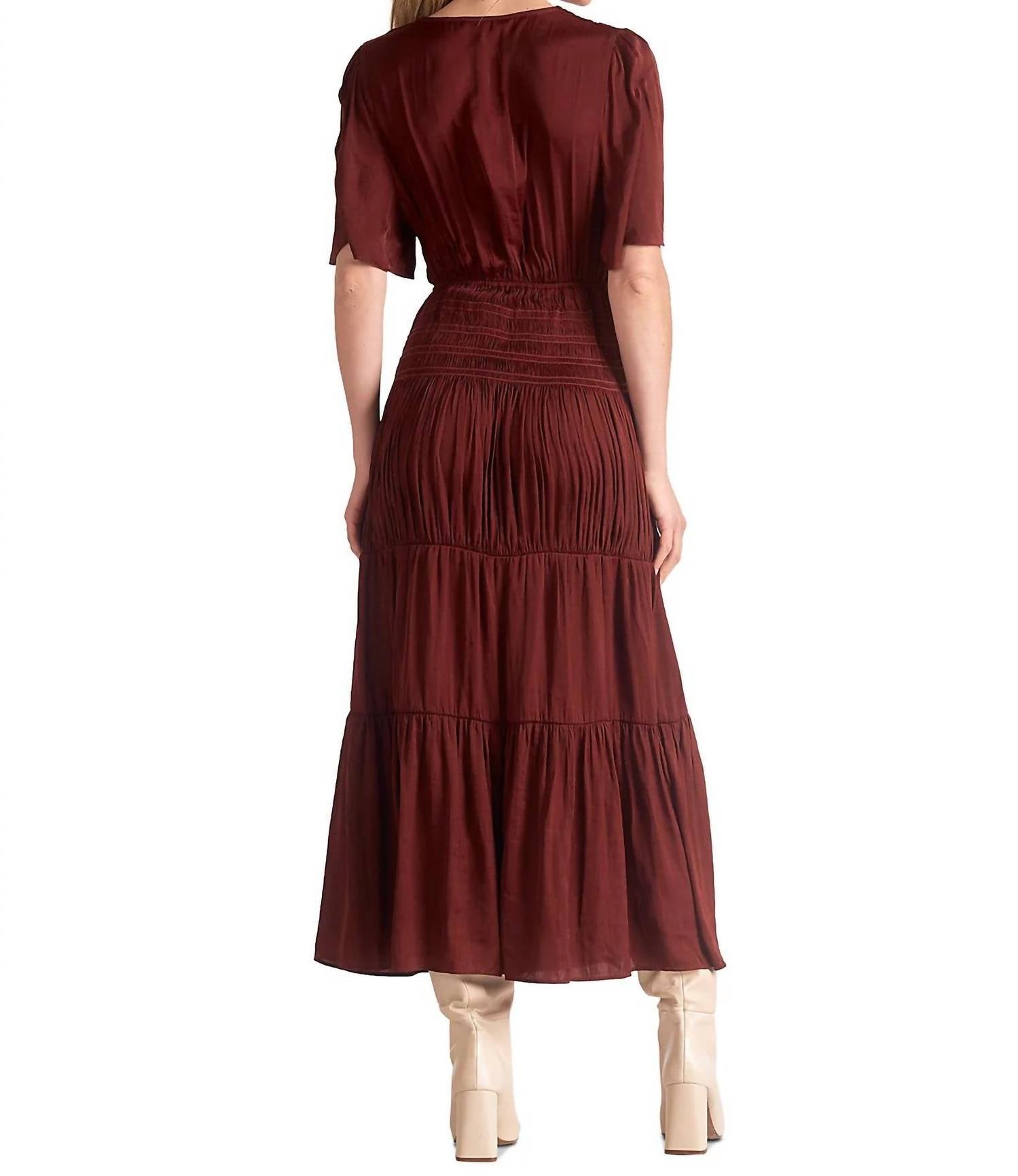 Just add slides or mules and you are good to go. Discover the ELAN Short Sleeve V-Neck Smocked Waist Dress in a captivating brick color, designed to enhance your wardrobe. This solid-patterned, A-line dress features a v-neck neckline and a smocked waist, ensuring a flattering fit for any occasion. The short sleeves complement the A-line silhouette, offering a touch of elegance without needing a closure. With a focus on quality, this versatile piece will seamlessly elevate your style.