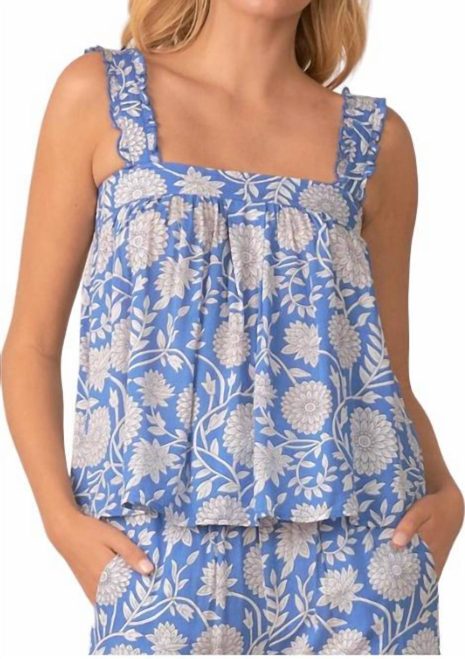 A timeless blouse that will never go out of style.Charming blouse features a delightful Caribbean floral pattern set against a vibrant periwinkle backdrop. Effortlessly blending sweetness with practicality. Smocked back and elasticized shoulder straps. Flattering fit. Pullover style offers convenience. Designed to fit comfortably over standard bra straps. Eliminates the need for a strapless bra.