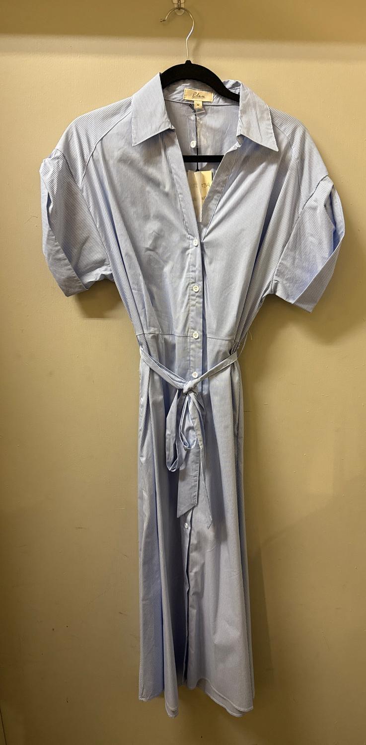 Just add slides or mules and you are good to go. The Stripe Midi Dress by ELAN is perfect for women seeking a stylish summer outfit with a workwear trend. Featuring short sleeves and a classic collar, this blue striped dress is designed in a shirt silhouette, ideal for engagement occasions. The dress includes a button closure for a polished finish.