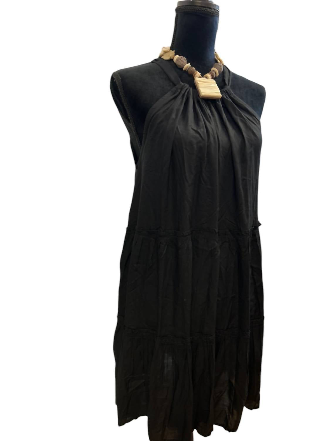 The kind of easy and flattering dress you'll be reaching for all season long. Introducing the Tahiti Dress by ELAN, a chic addition to your summer wardrobe. This sleeveless mini dress is crafted from 100% Rayon, offering a luxurious feel with a solid black design. Featuring an elegant collar neckline and a flattering A-line silhouette, it seamlessly accentuates your figure. Closure: Pull on. Available in standard sizing with a true-to-size fit.