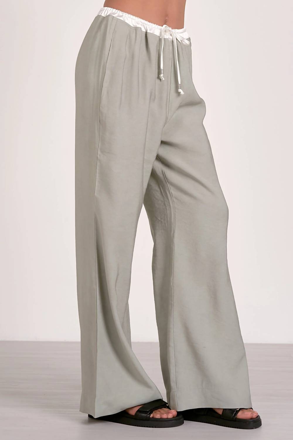 Embrace elegance with the Taylor Wide Leg Pants by ELAN, designed to offer comfort and style in a chic grey and white combo. These women's pants feature a pull-on closure with an elastic waist and a functional drawstring, providing a practical yet stylish fit. Composition: 70% Rayon, 30% Polyester with functional pockets adding convenience to this minimalist staple. Care instructions: Hand wash cold and line dry only, perfect for spring dinner parties or casual outings.