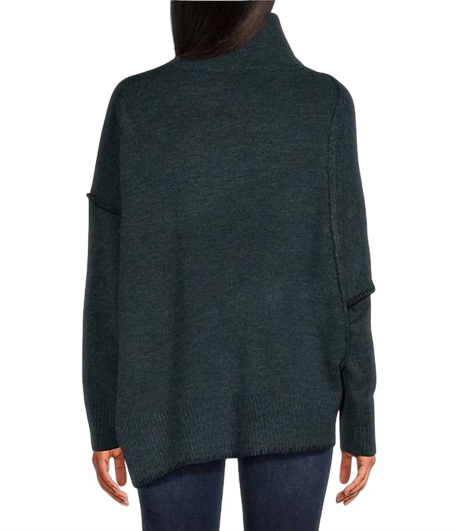 Layer under your favorite sweater or wear tucked into jeans for a perfectly polished winter look. Sweater knit fabrication. Turtleneck neckline. Long sleeves. Black & white stitching. Loose fit. Asymmetrical hemline. Pullover construction. Approx. 28" length. Acrylic/nylon/polyester. Hand wash. Imported.