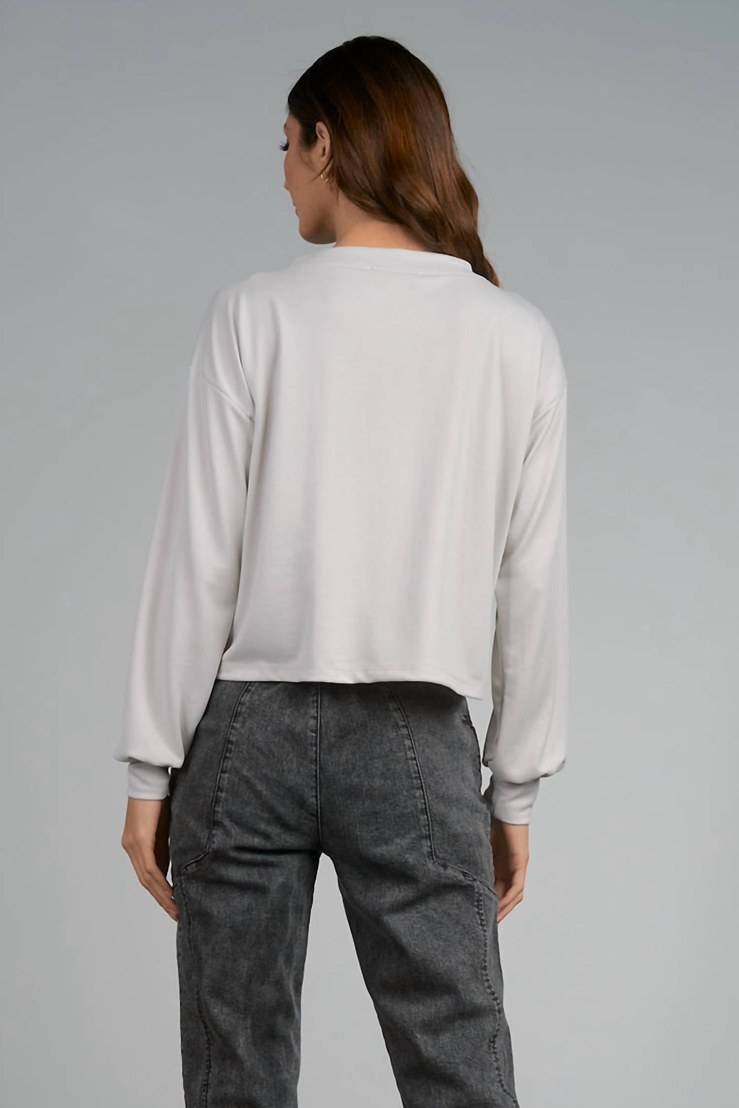 A long sleeve top you can wear with denim, skirts, well... just about anything! 72% Modal 28% Poly Pique. Long sleeve. Plain color pattern. Pull on closure. Cropped length. V-neck.