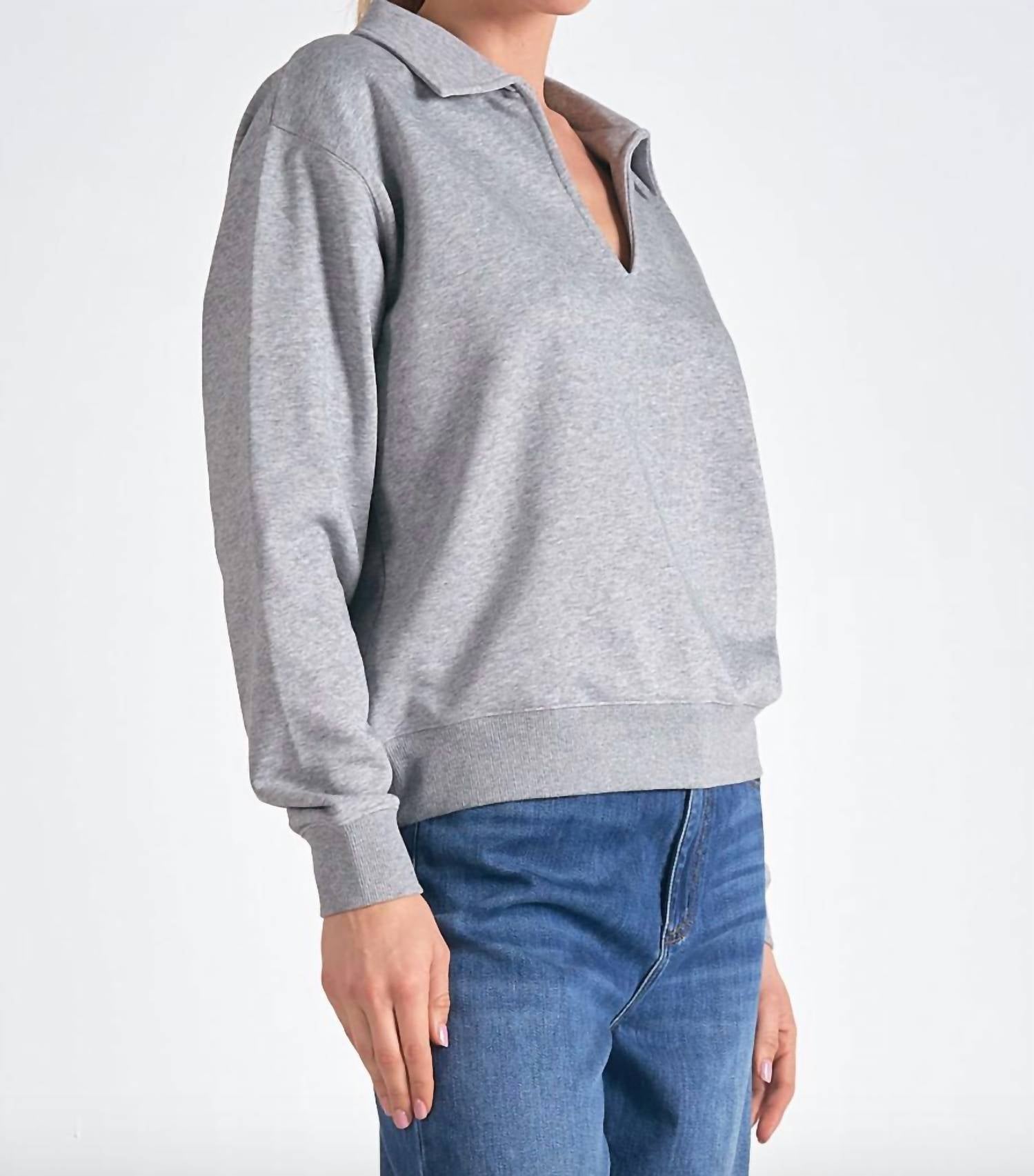 Cooler temps call for layering and we love this adorable sweatshirt for all the obvious reasons. Discover the ELAN V-neck Long Sleeve Sweatshirt, a chic piece designed for the modern woman. In a trendy heather grey, this solid sweatshirt offers the comfort and style perfect for fall travel and New Year's Eve occasions. Featuring a convenient pull-on closure, it embodies a preppy aesthetic with its v-neckline and long sleeves. For best care, hand wash and lay flat to dry.