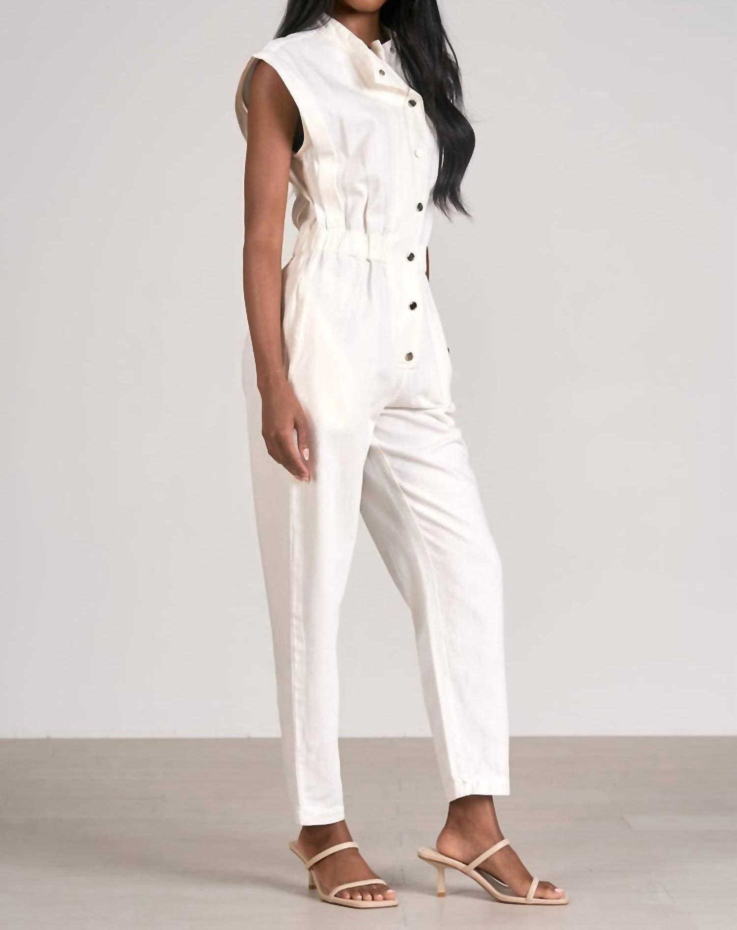 The perfect outfit choice when you you need something quick to throw on and still want to look efforlessly cool. Introducing the ELAN Women's Denim Sleeveless Jumpsuit, a perfect blend of style and practicality. Crafted from solid denim, this jumpsuit features a straight leg and classic fit, adding sophistication to your look. Ideal for summer, its snap closure and functional pockets make it both chic and easy to wear. Originating from versatile streetwear trends, this piece is machine washable, ensuring fuss-free maintenance for all your fashionable outings.