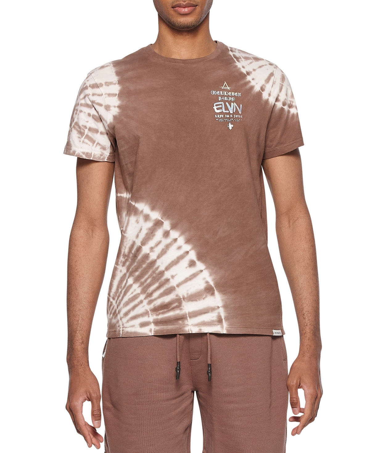 Elevenparis Men's Tie Dye Cotton Graphic Tee Brown Size XX-Large
