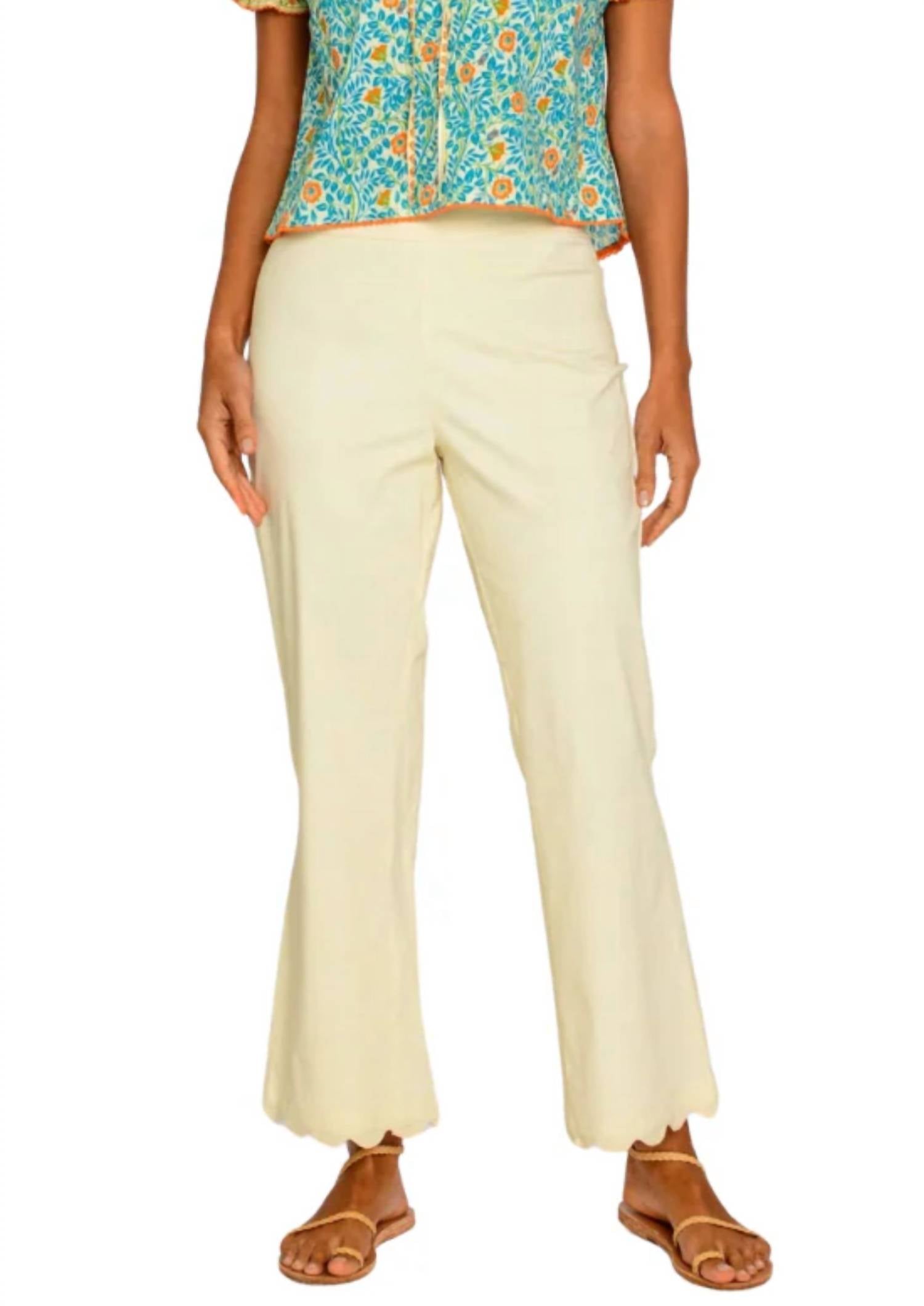 The trend report says boot-cut is in and that's exactly why we love this style. They are fit to perfection, flattering on any body type, and comfortable. They will be your go-to all season long. Introducing the ELIZABETH AND JAMES Jojo Pants in Solid Ivory, a must-have for your warm-weather wardrobe. These women's pants, crafted from cotton, feature a regular fit with a high-rise waist and flared leg for a flattering silhouette. Designed with a pull-on closure, they are as practical as they are stylish, perfect for vacation vibes. Care instructions include machine wash and line dry, making these pants a go-to for effortless elegance.